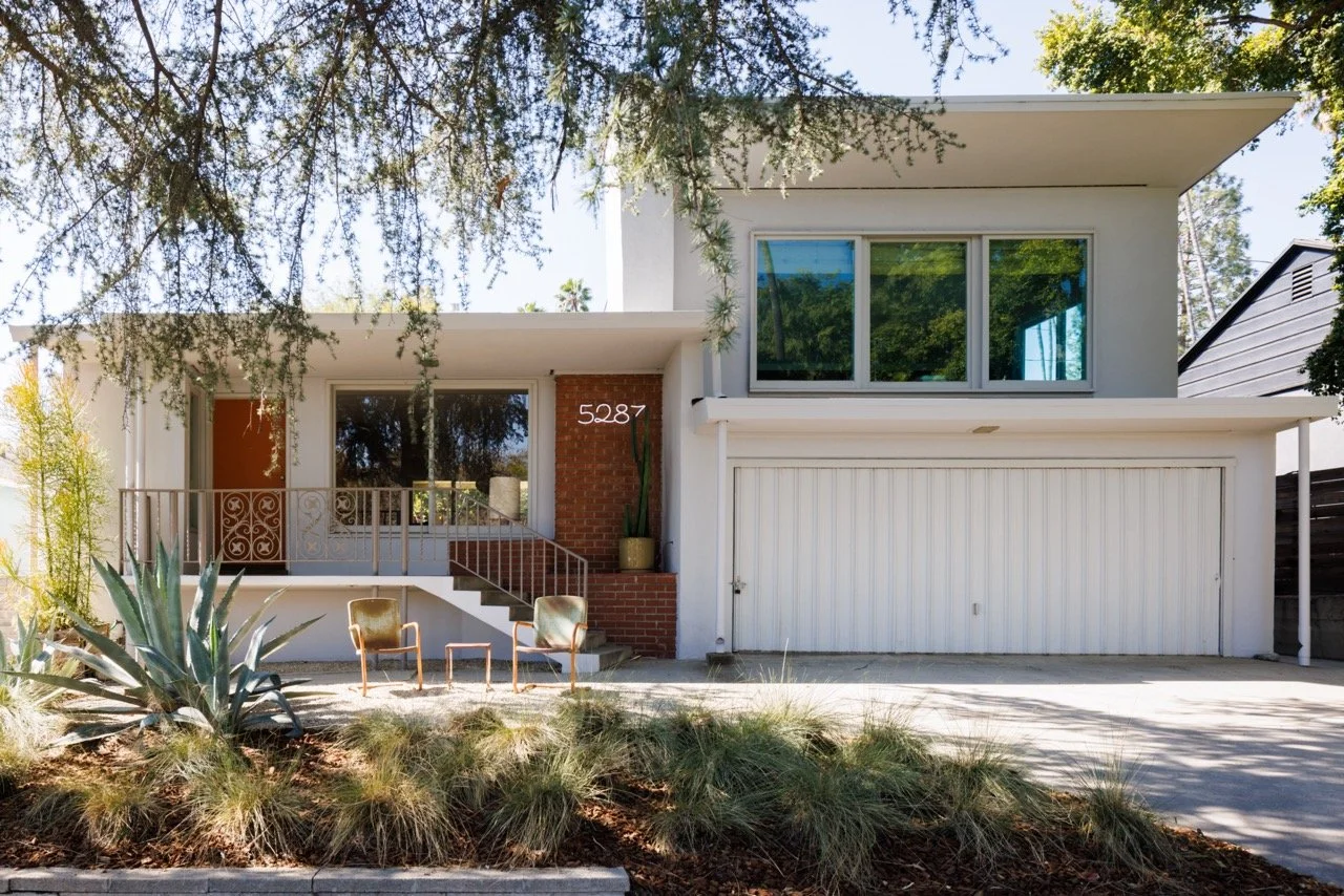 A Striking midcentury with cool, California vibes & mature landscaping.