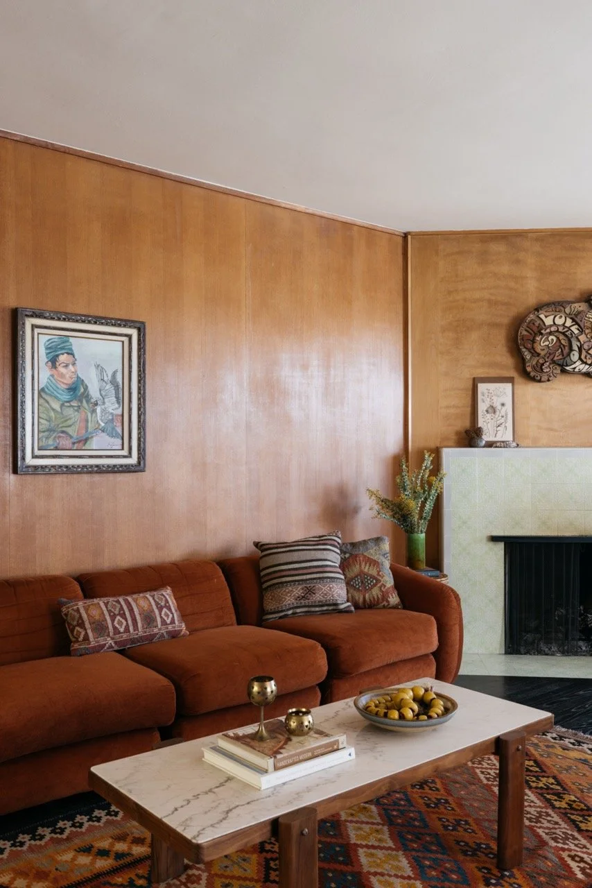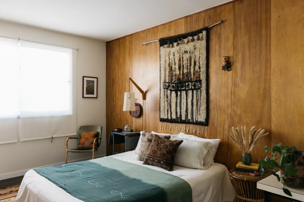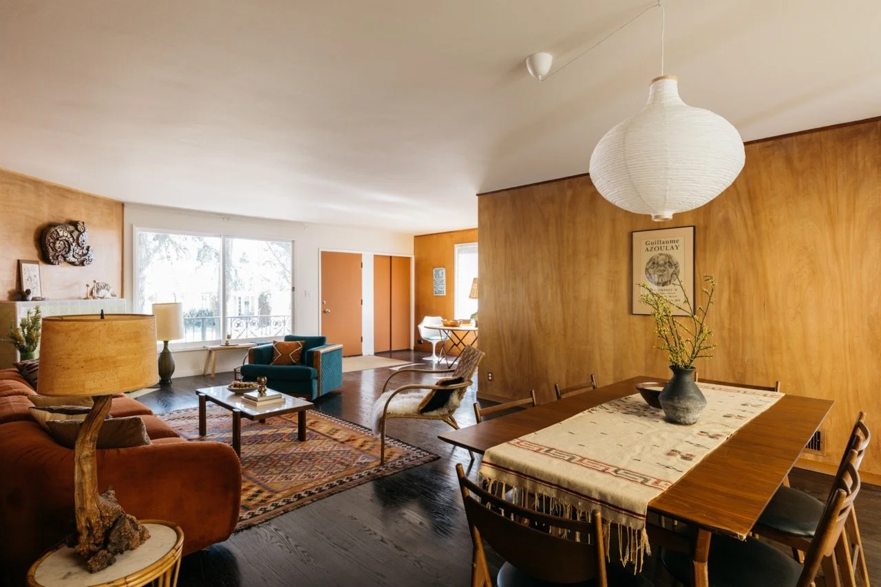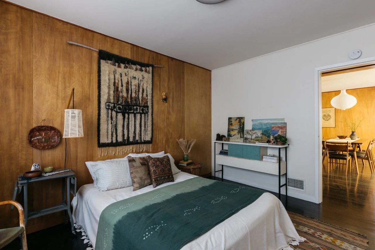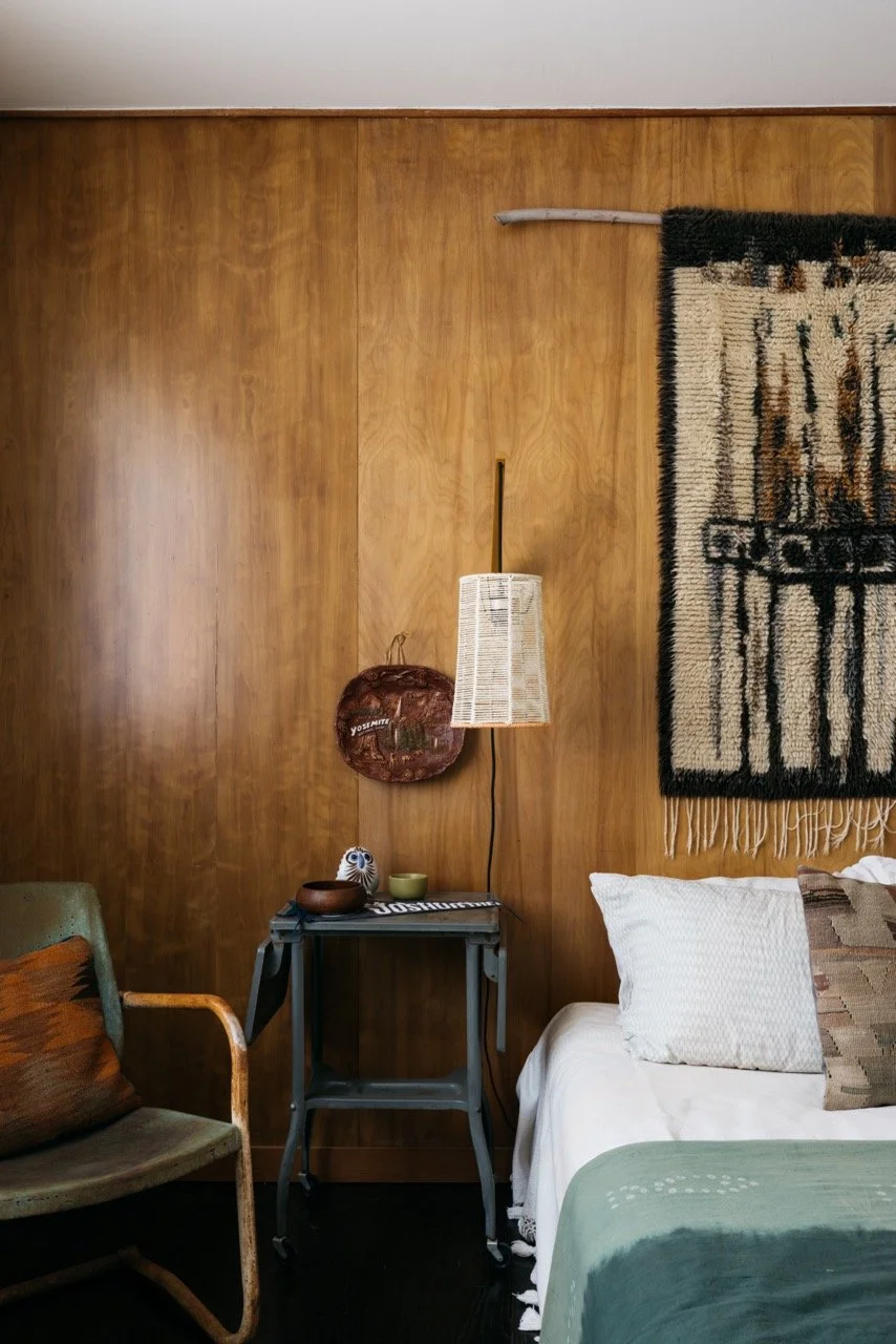An all original 1950s modern family home with warm wood paneling, bohemian decor, and all the laid back California vibes.