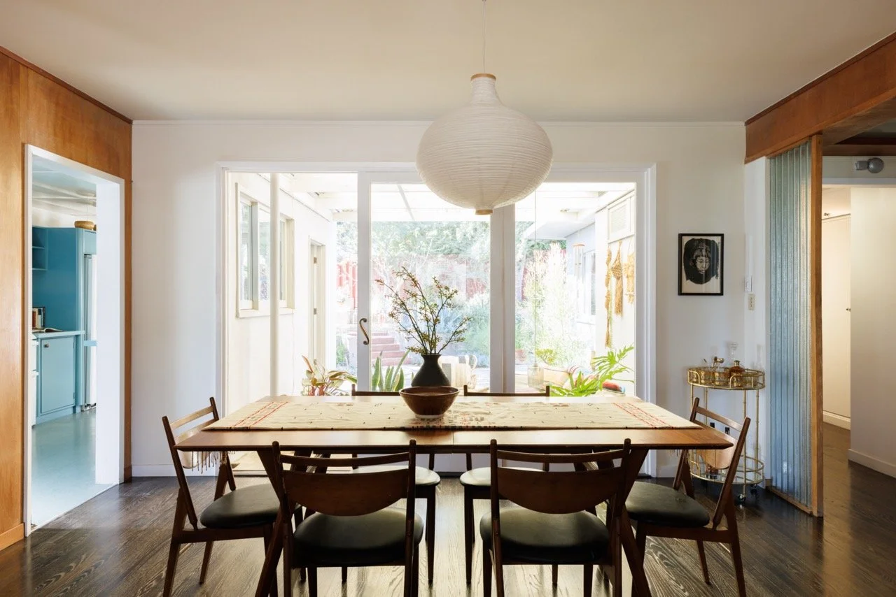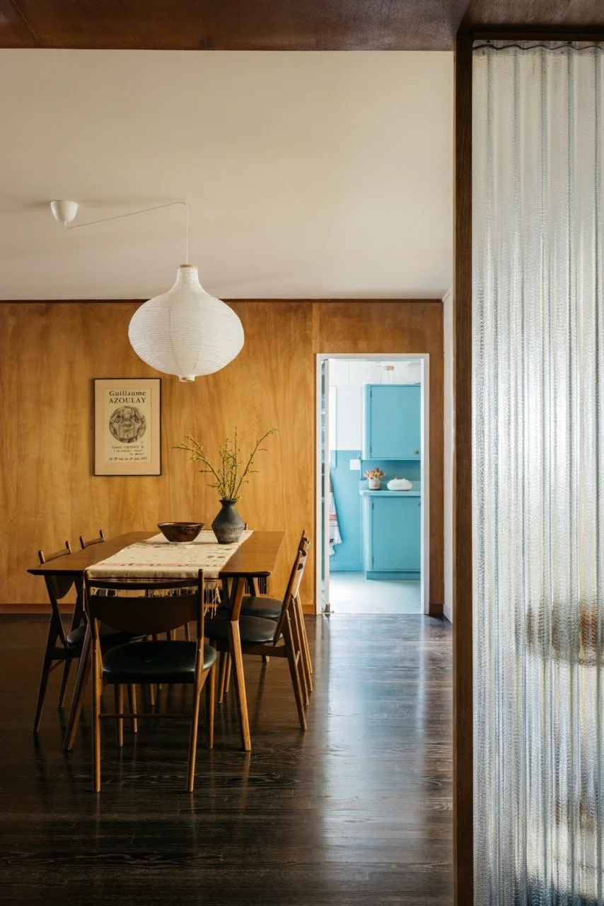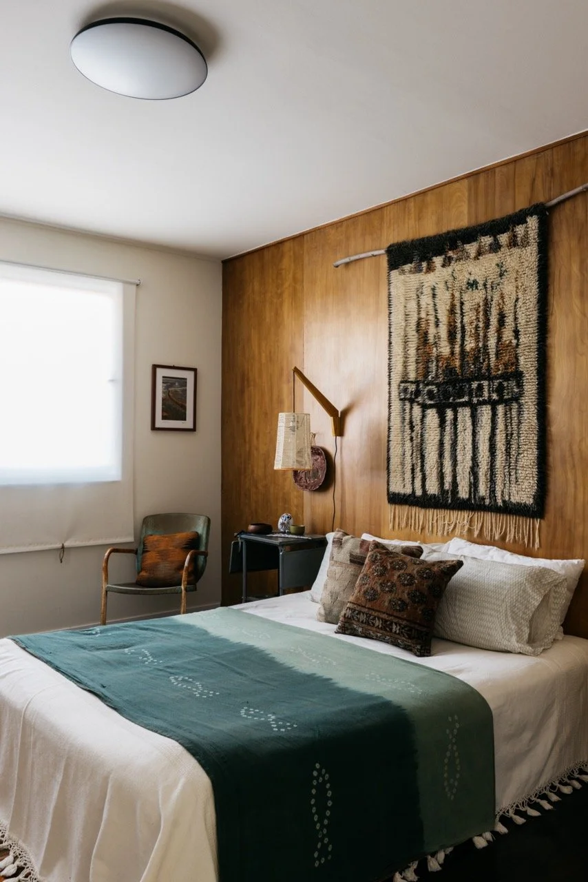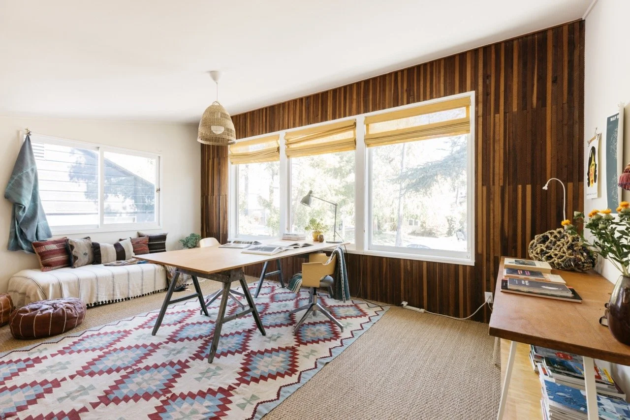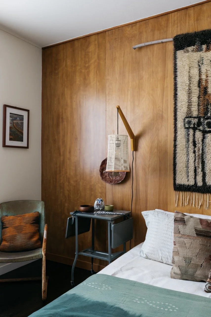 An all original 1950s modern family home with warm wood paneling, bohemian decor, and all the laid back California vibes.