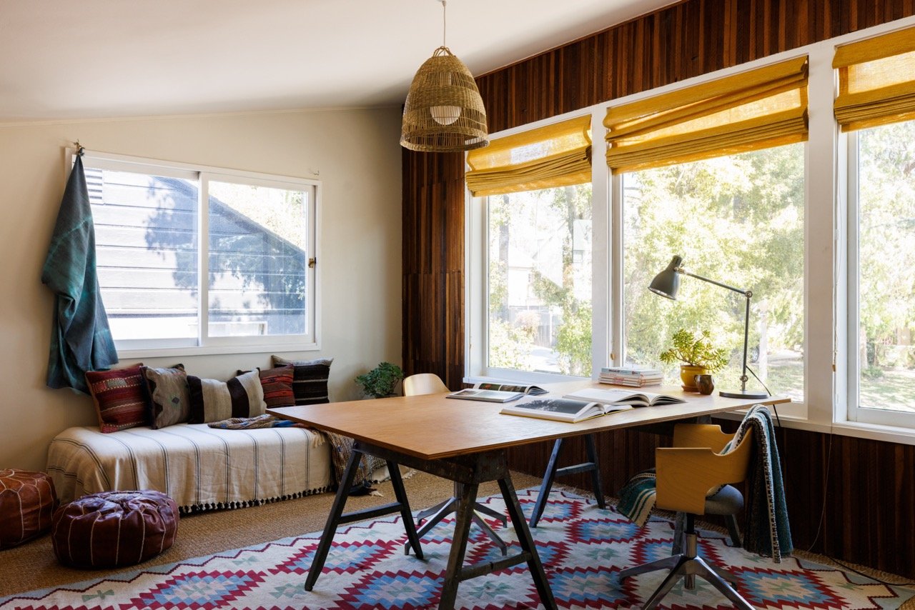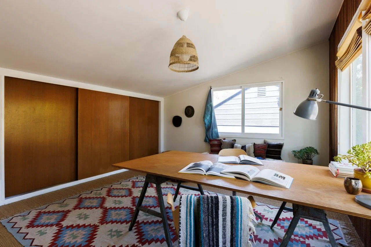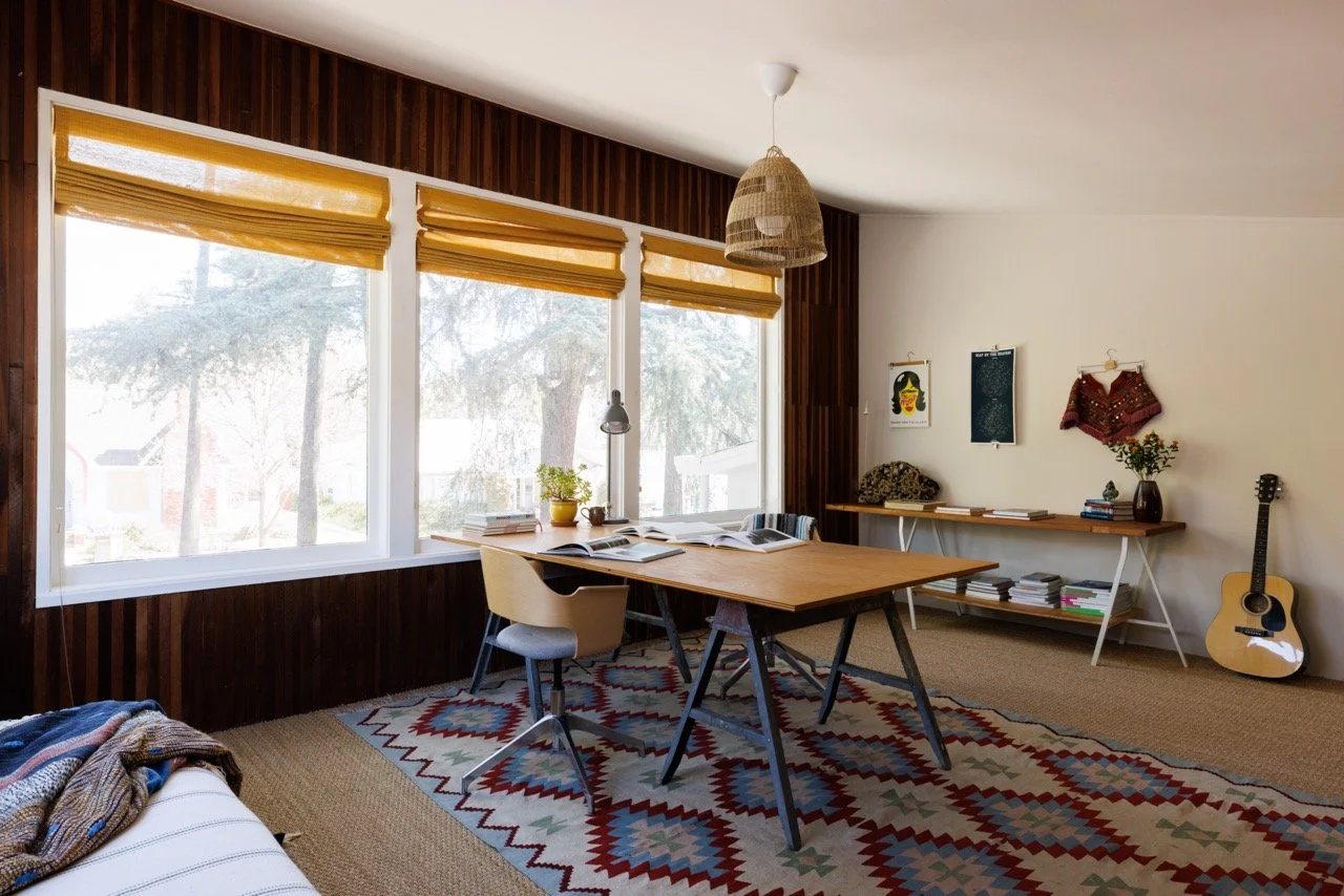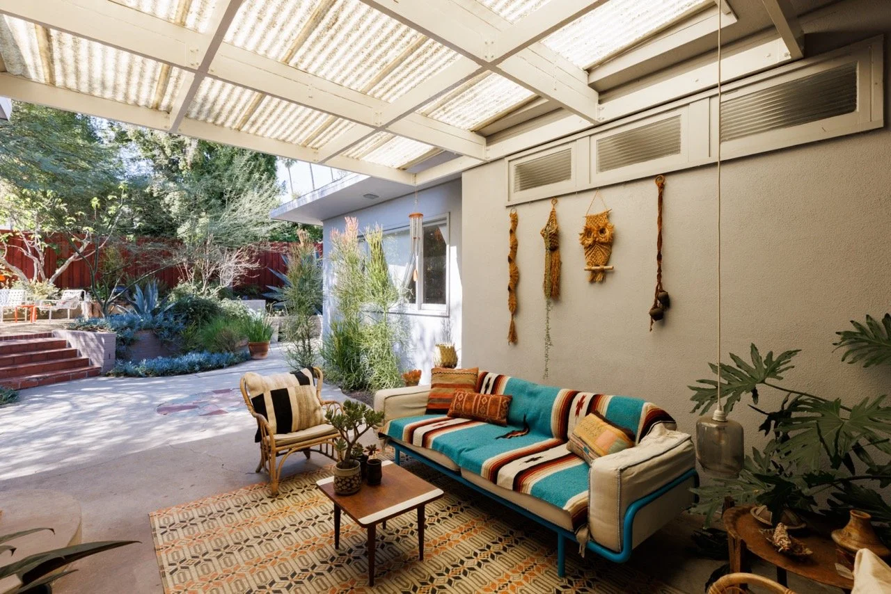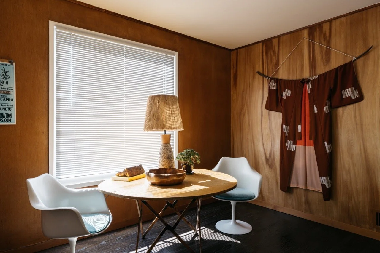 An all original 1950s modern family home with warm wood paneling, bohemian decor, and all the laid back California vibes.