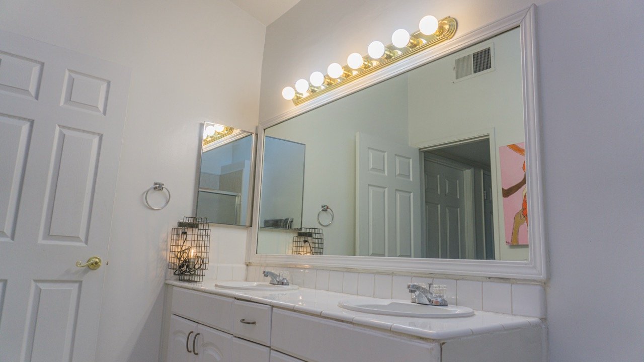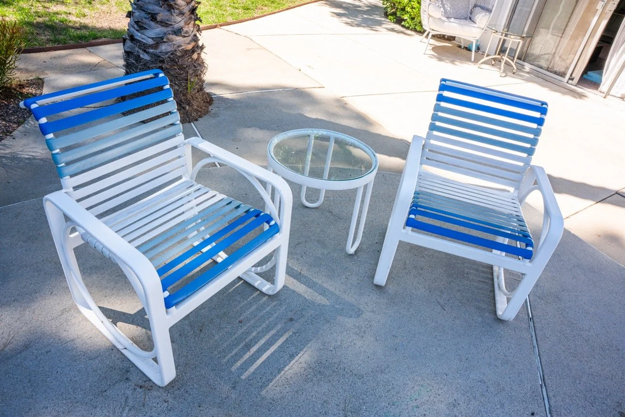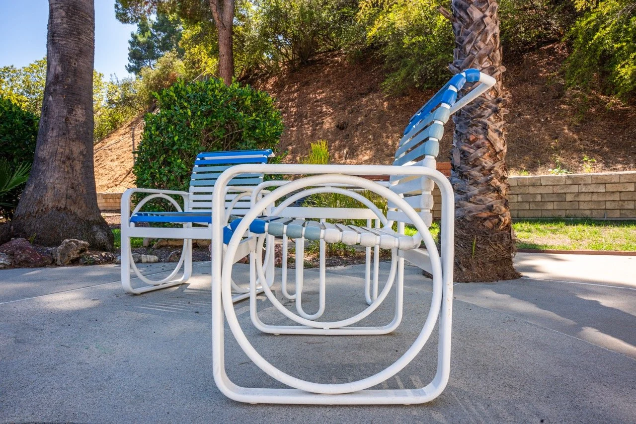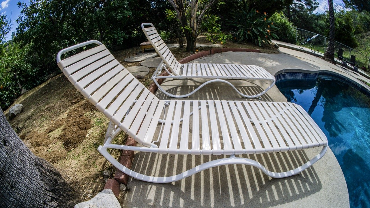 Step outside to discover a beautiful Arabella mid-century couch on the patio, as well as a rattan sofa by the pool. There are 2 loungers by the pool and plenty of outdoor space for creative setups.