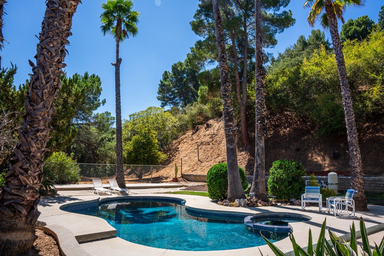 The pool and hot tub add a luxurious touch, enhancing the overall appeal of the property.