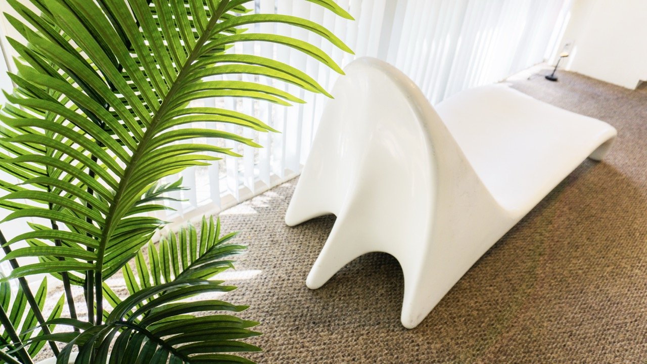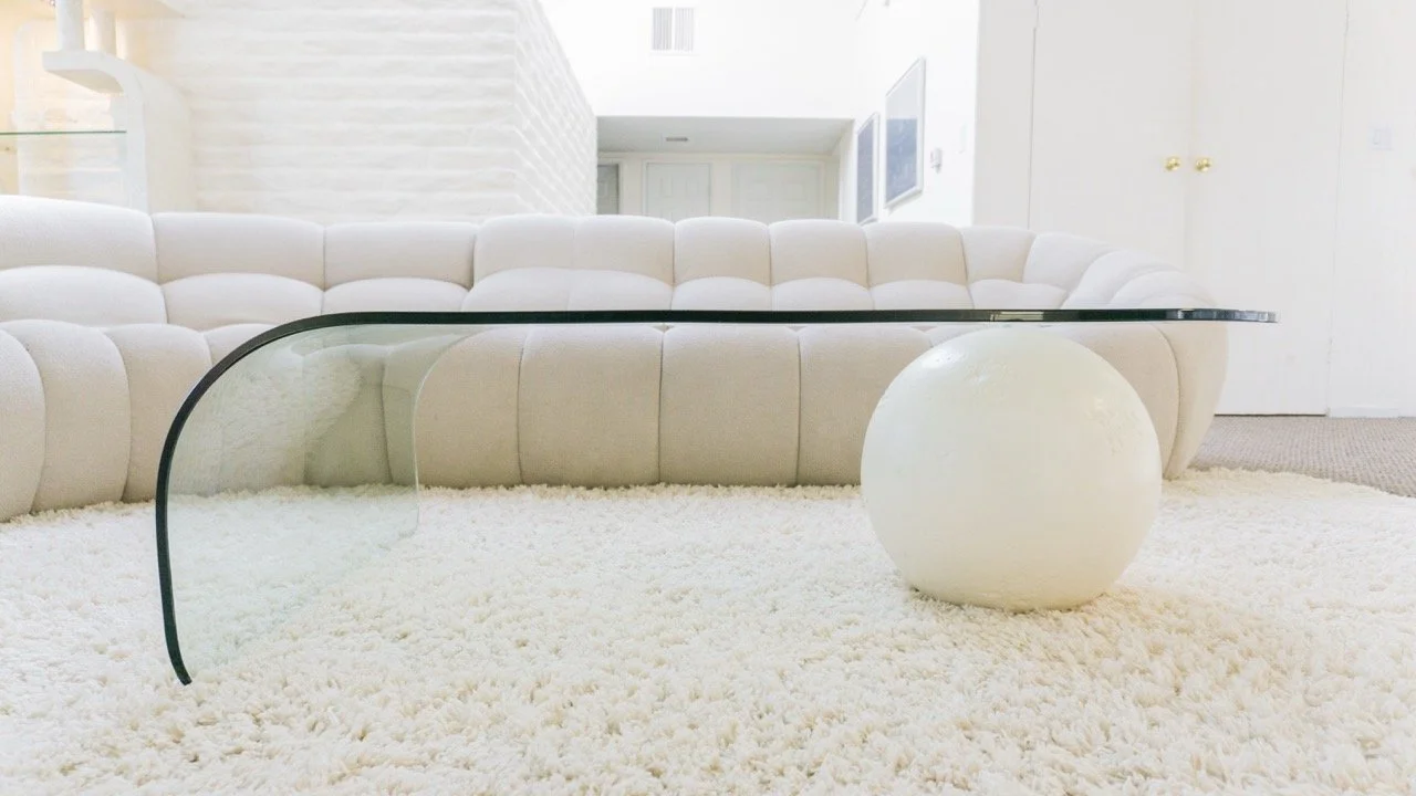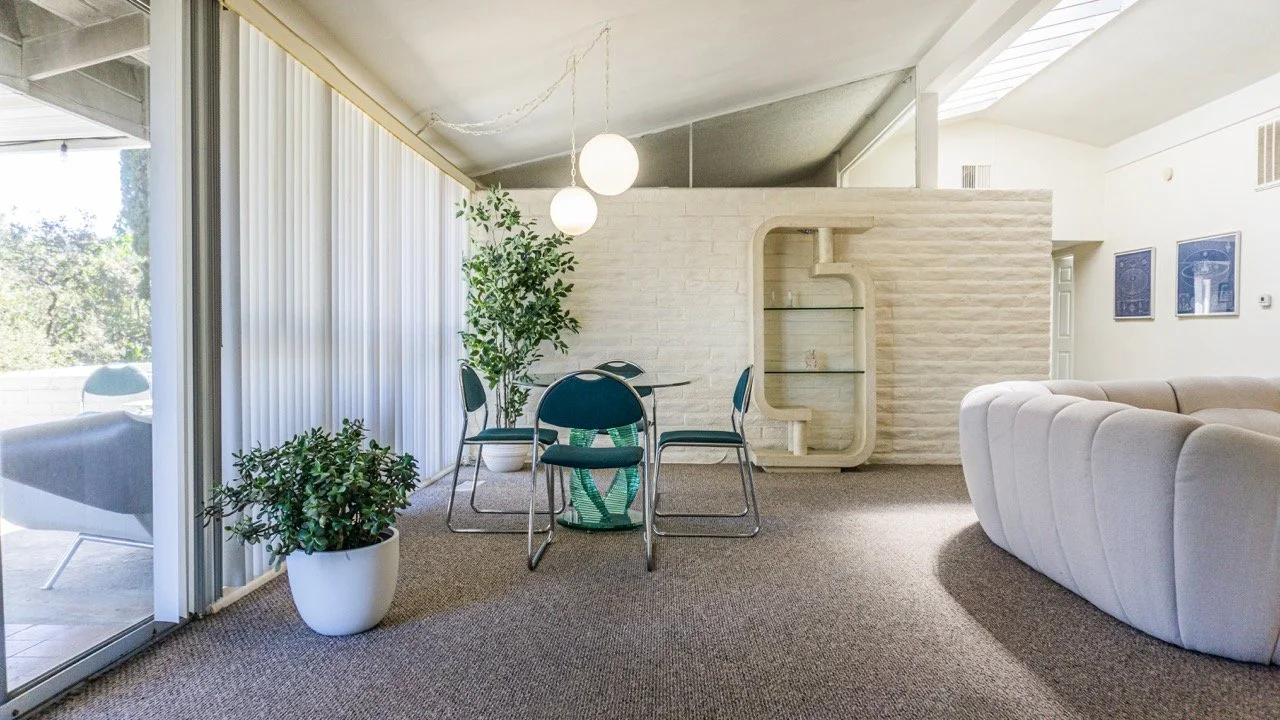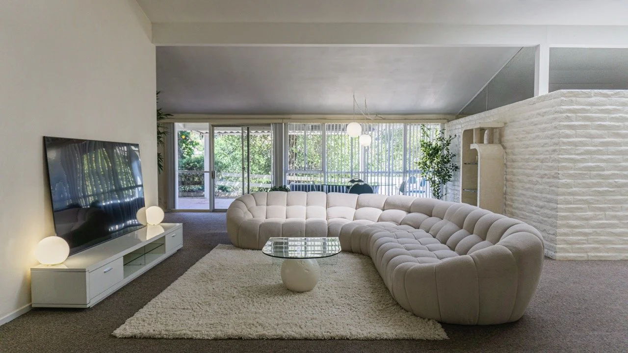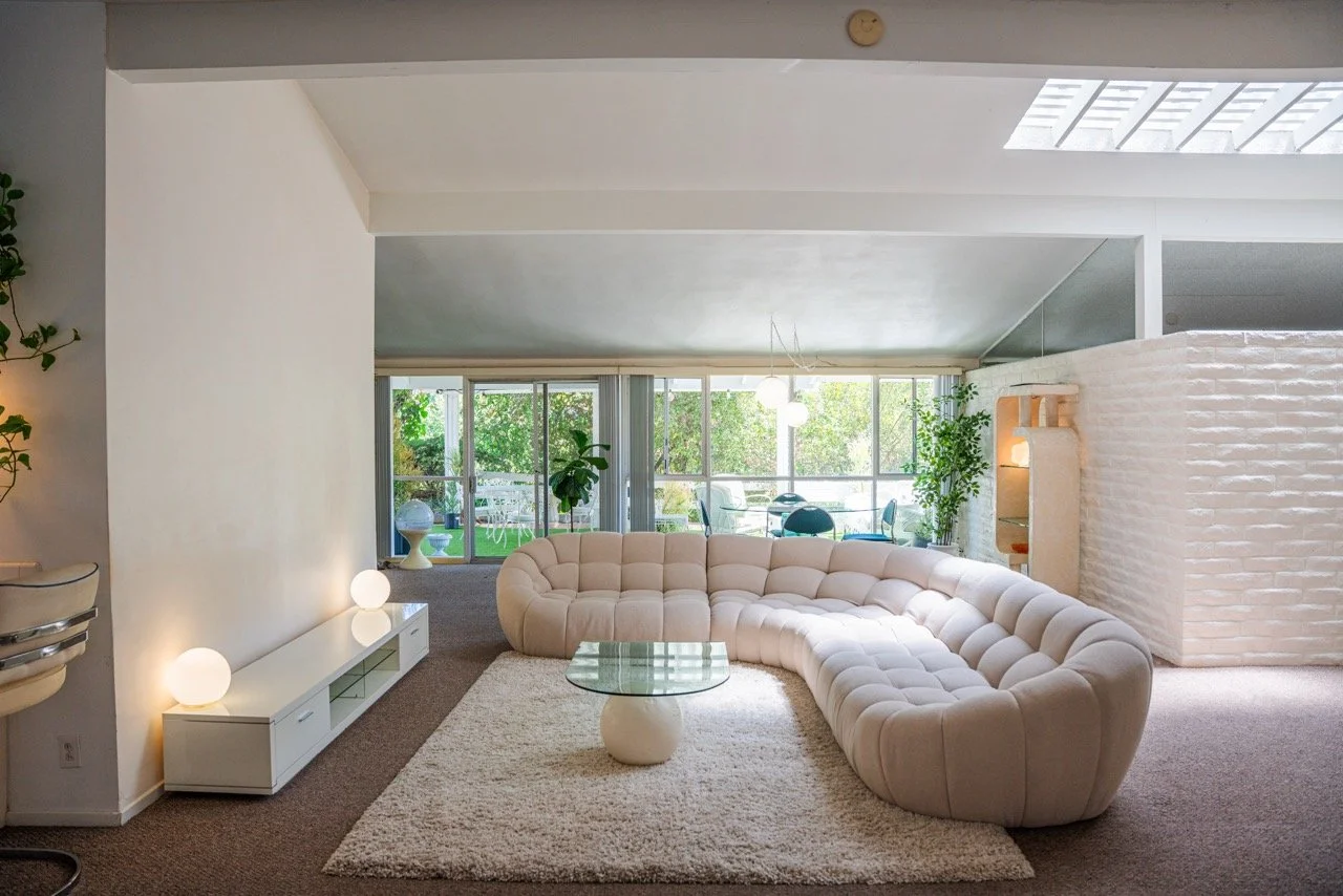 Midcentury Modern monochromatic Home with iconic kidney-shaped pool