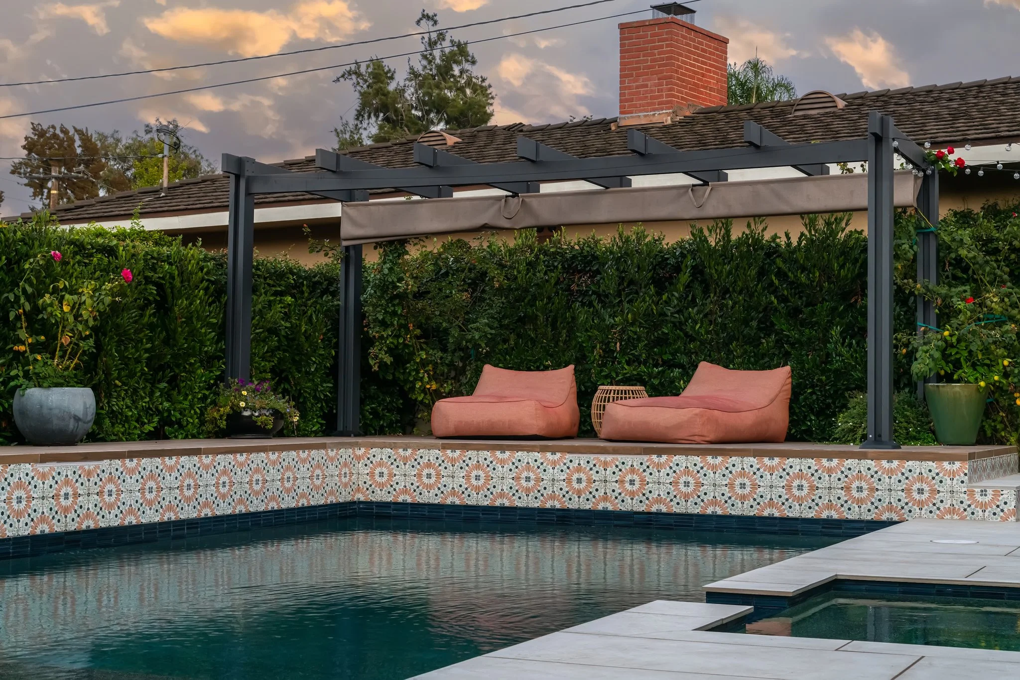 a Modernized Midcentury with a spanish tile pool & covered courtyard design