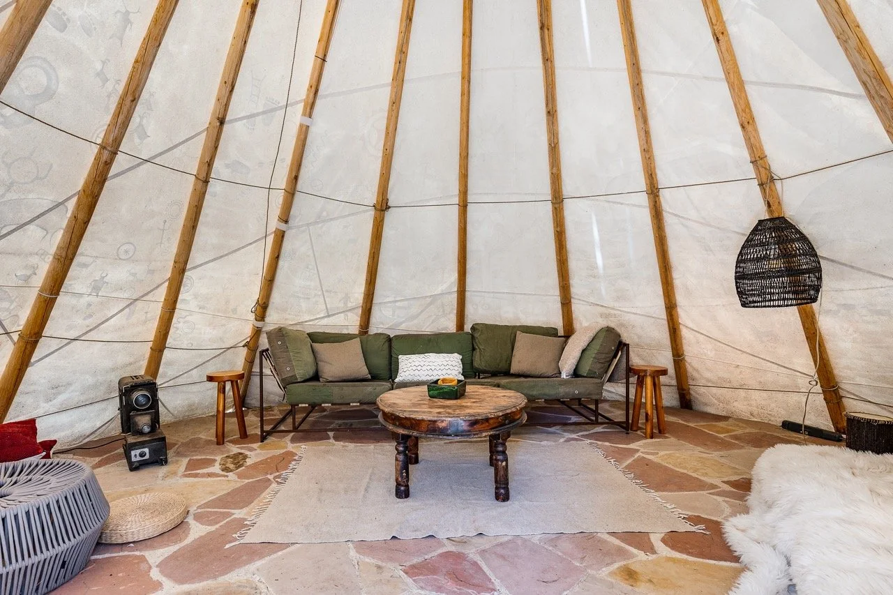 An Historic Mountain escape with a Teepee and A huge swimming pool.