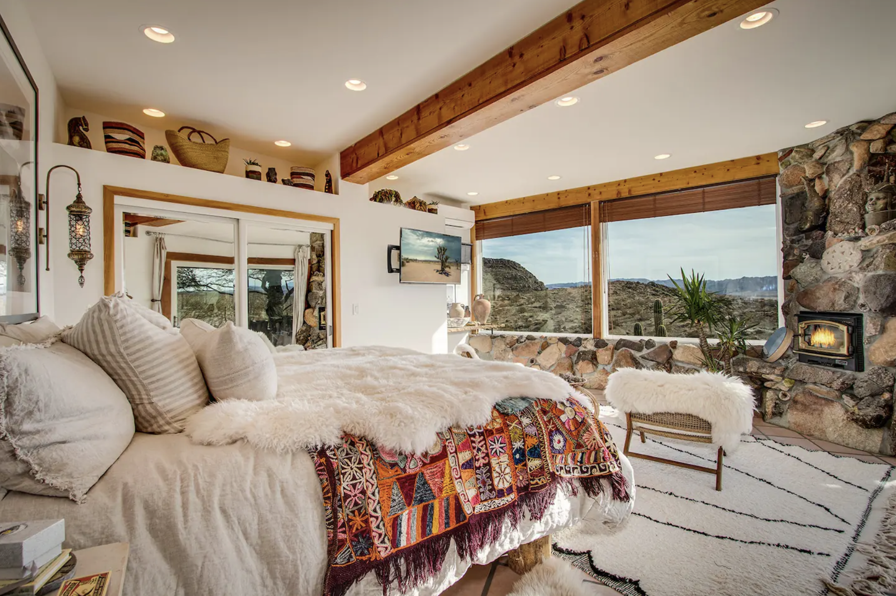 Although you'll feel like you've traveled to another world, the ranch is centrally located in Joshua Tree. It is 15 minutes from the main visitors’ entrance, 25 minutes from the popular Pappy & Harriet's in Pioneertown, and 45 minutes from Palm Springs. It is a 2 1/2 hour drive from Los Angeles but for a quicker escape from the city, there is also a helipad on the property.