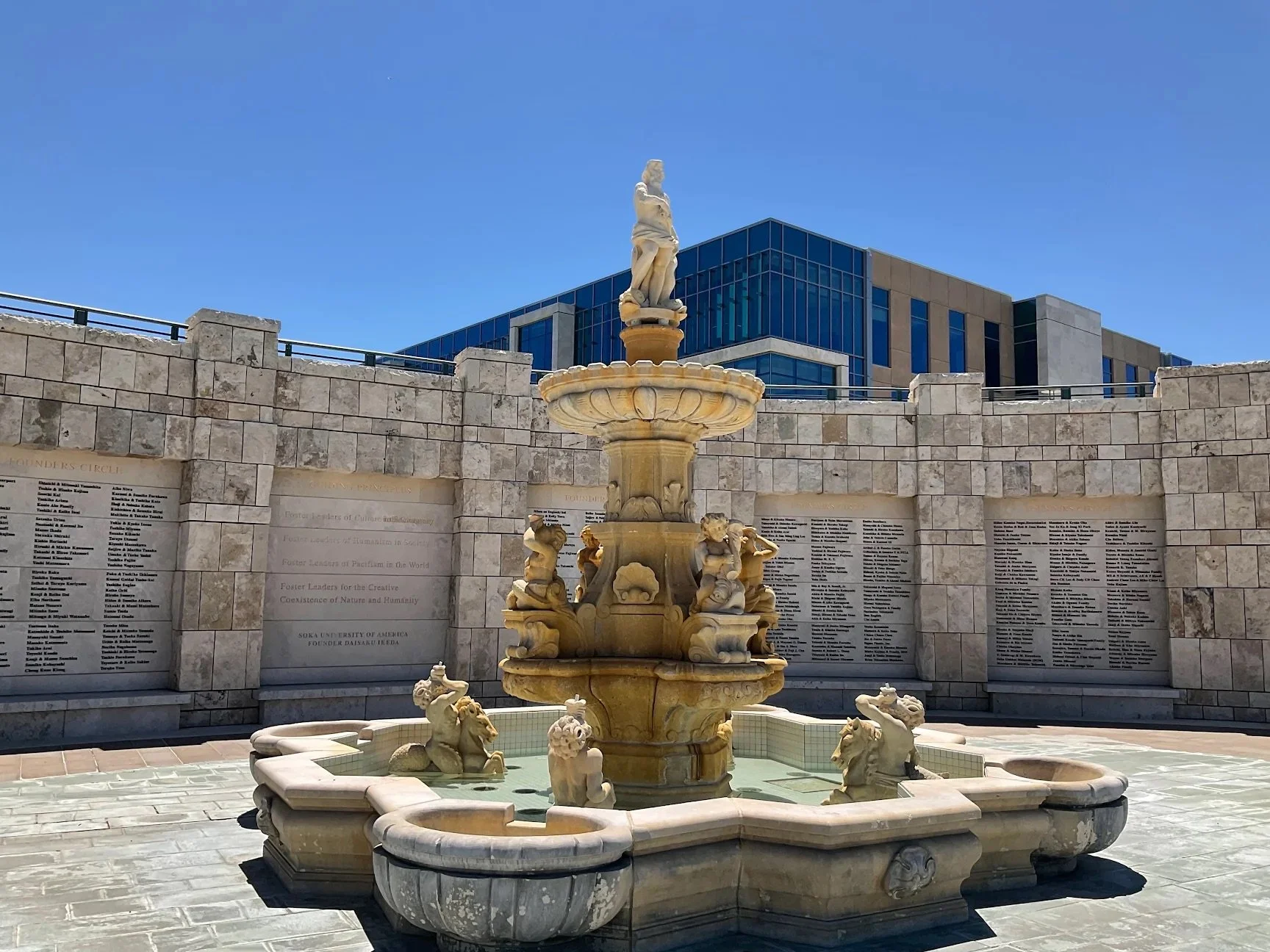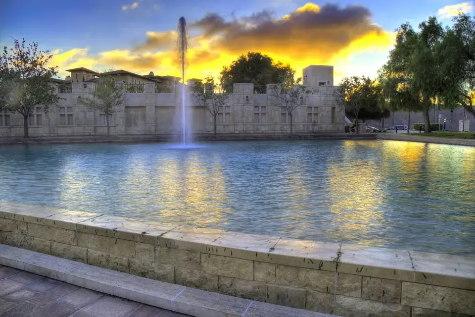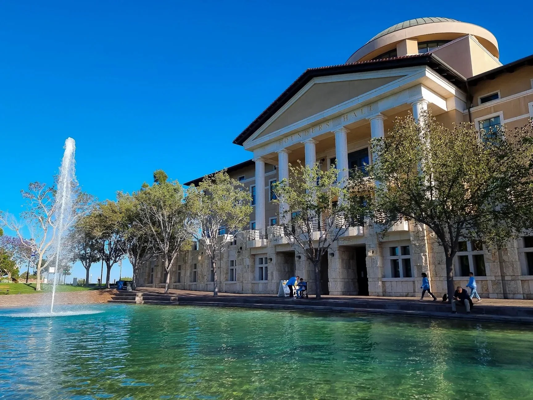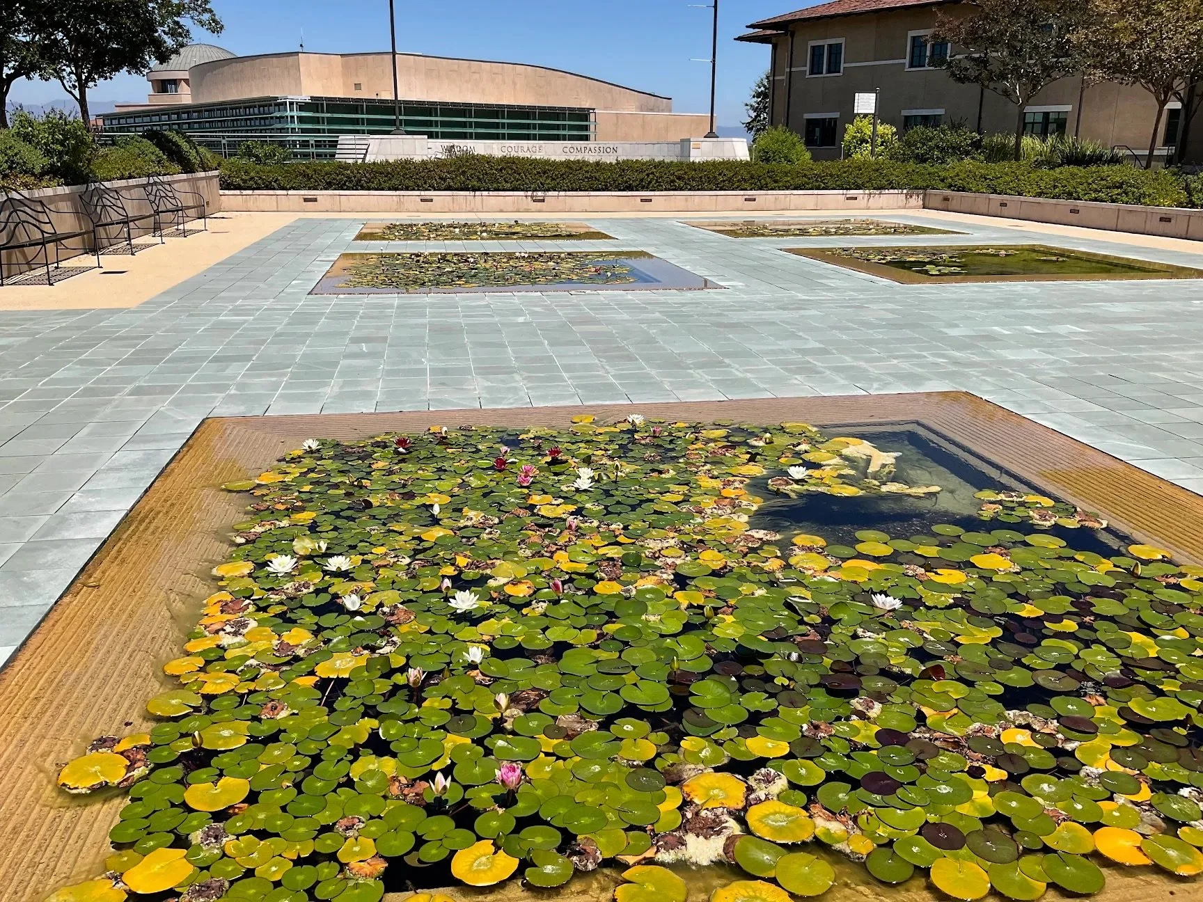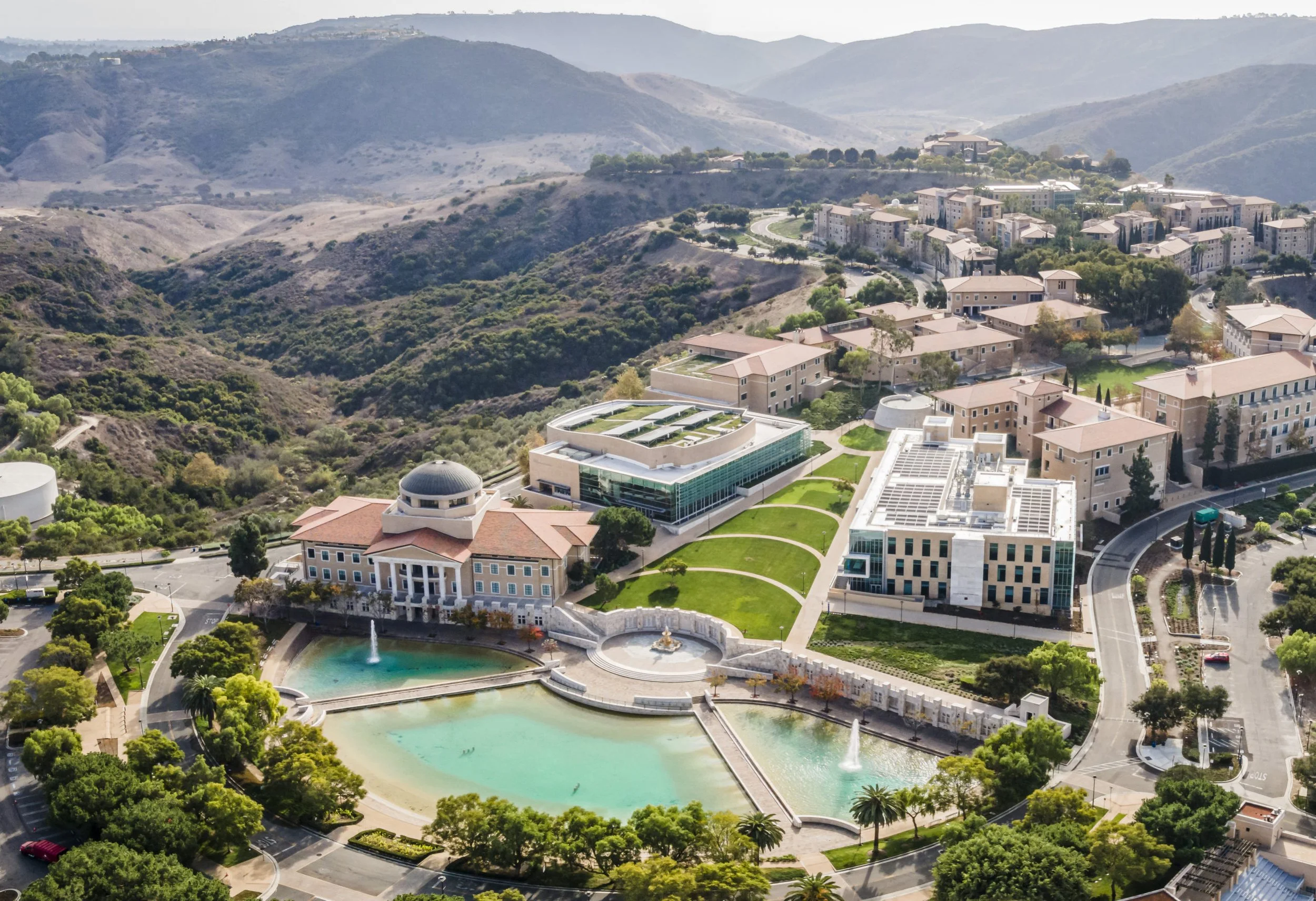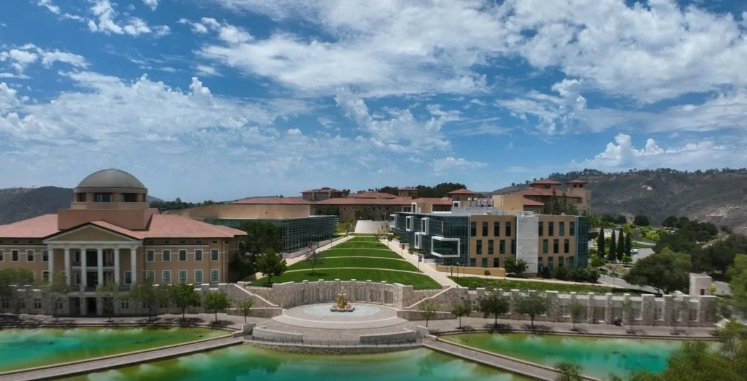 Set on a gently terraced hill with sweeping views of the coastline and the nearby mountains, this campus pairs minimalist modernism with thoughtful Greek and Japanese-inspired design. Clean lines, warm wood accents, and abundant glass create interiors that feel simultaneously airy and intimate; courtyards, koi ponds, and maple-lined walkways provide quiet transitional spaces that bring nature into daily circulation. Signature buildings feature exposed concrete, timber beams, and generous overhangs that balance sun and shade while framing dramatic sightlines across campus.