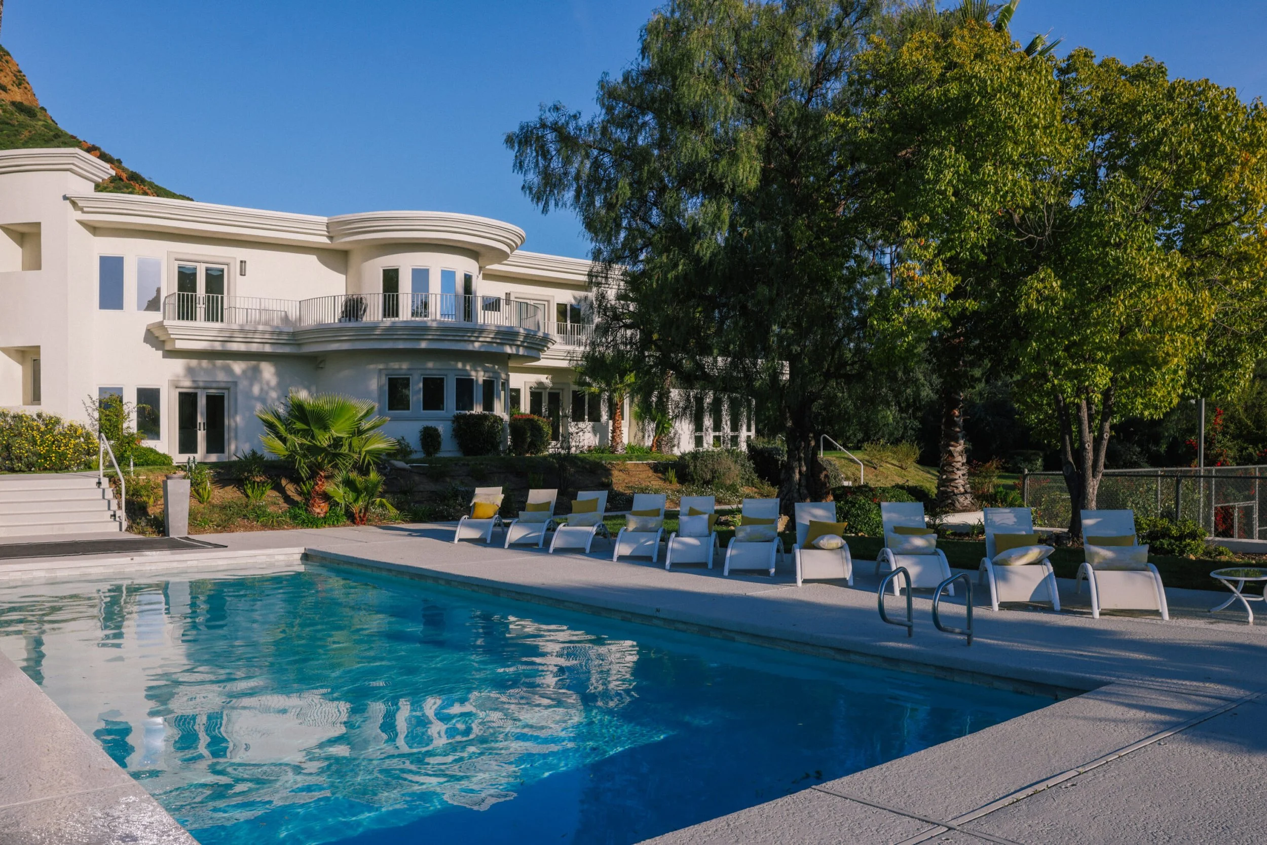 cONTEMPORARY mansion with iconic pool on 2.5 acres of lush landscaping.