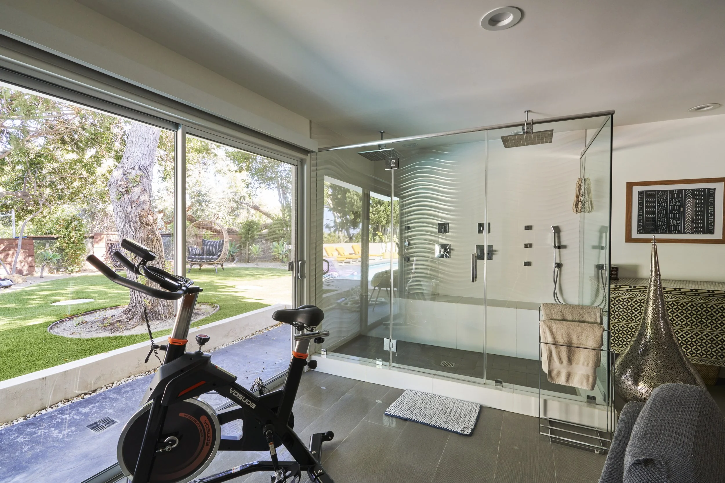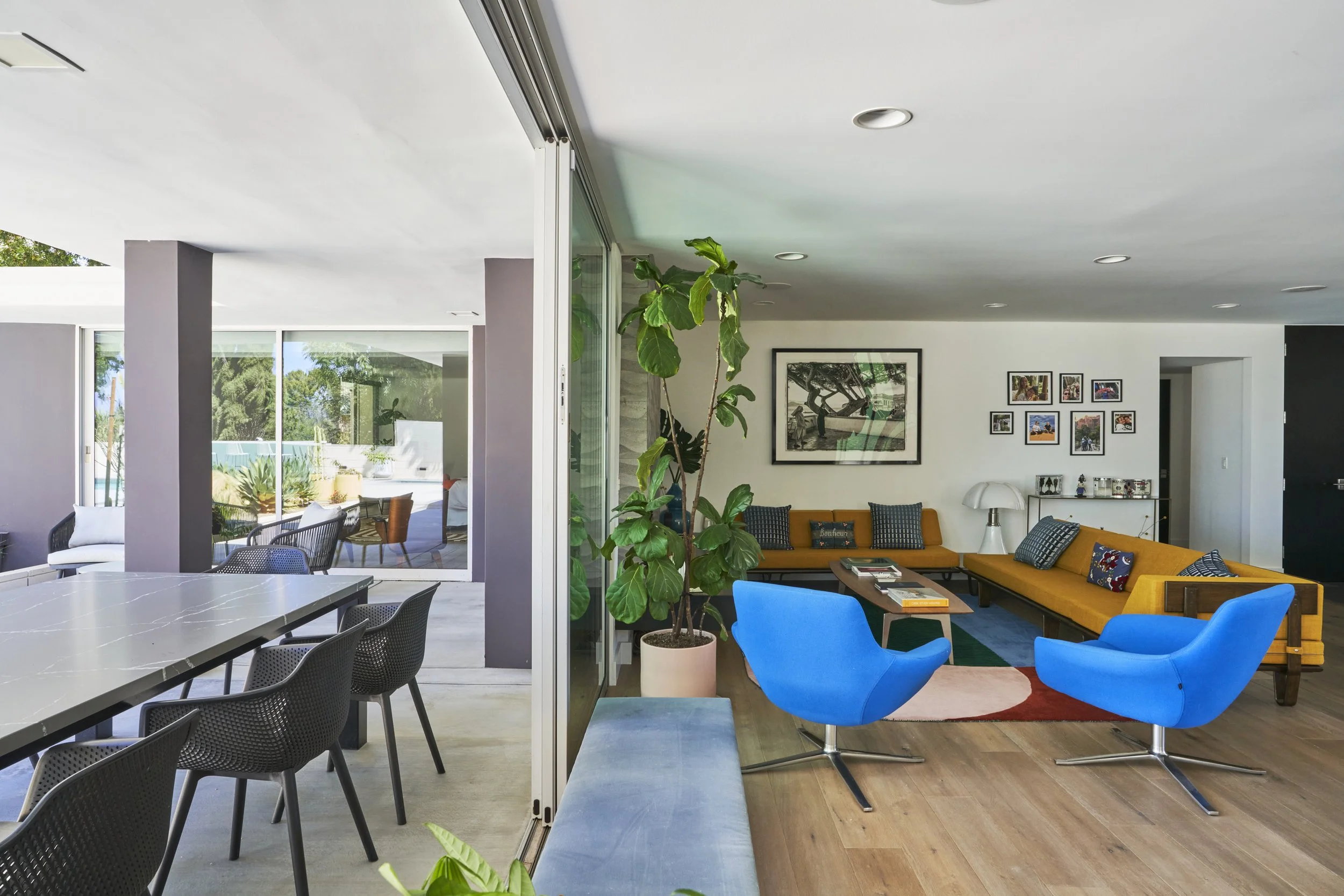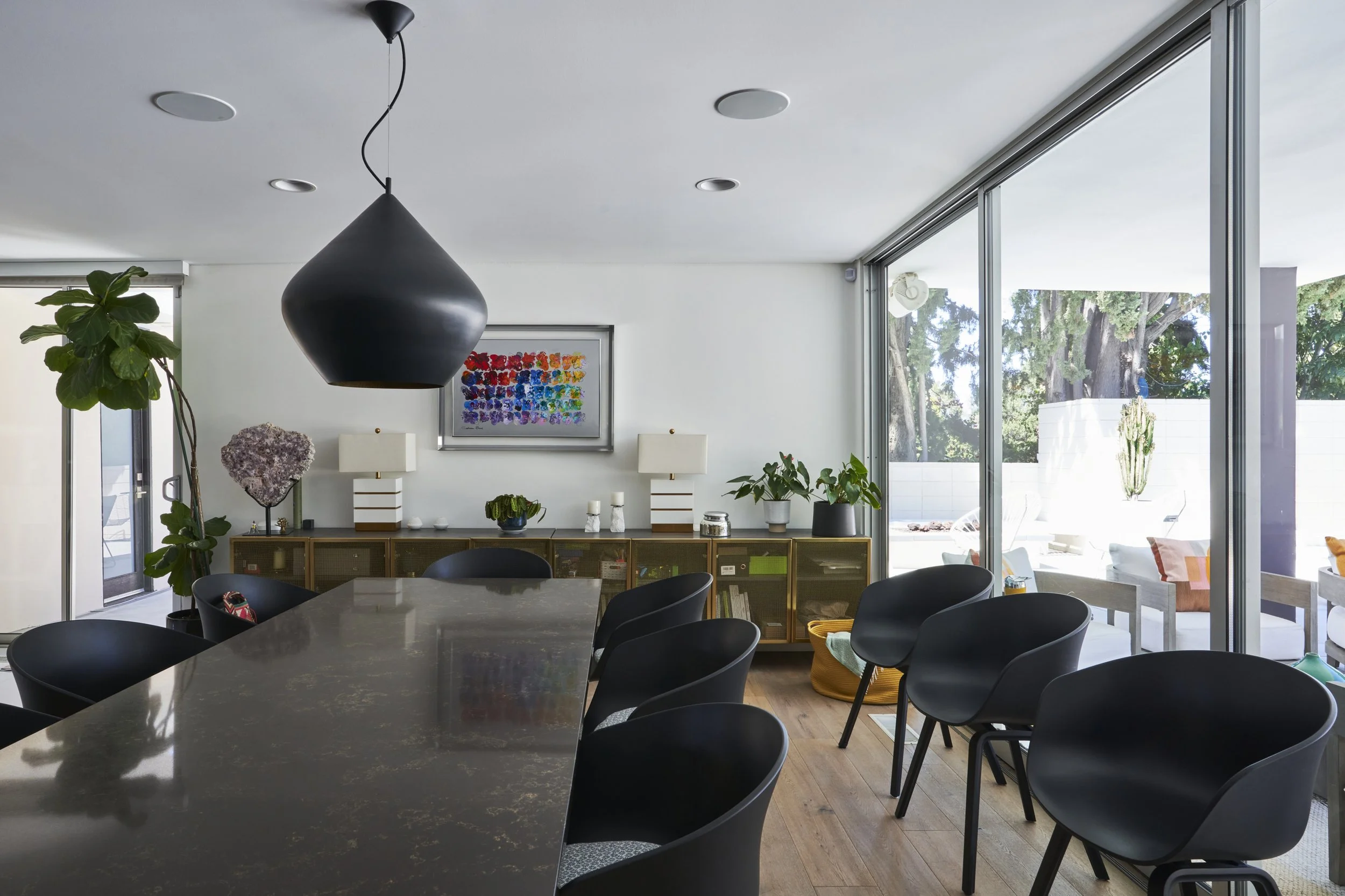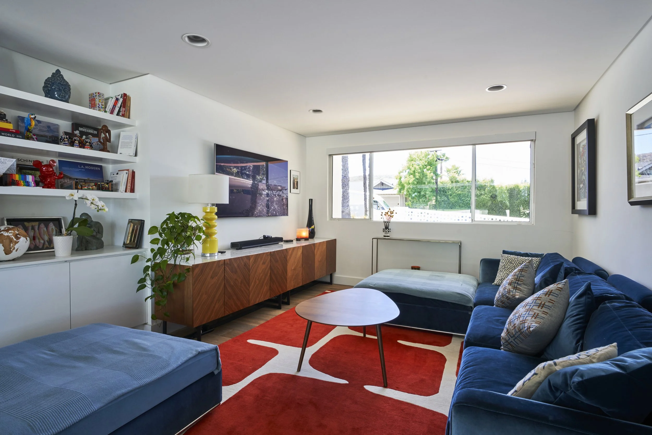 Midcentury Mansion boasts a stunning Palm Springs-like aesthetic, complete with breathtaking views of swaying palm trees, exceptional cement work, and an inviting pool area. The eclectic decor pays homage to its Mid-Century roots while also incorporating contemporary elements to ensure that the space feels fresh and current.