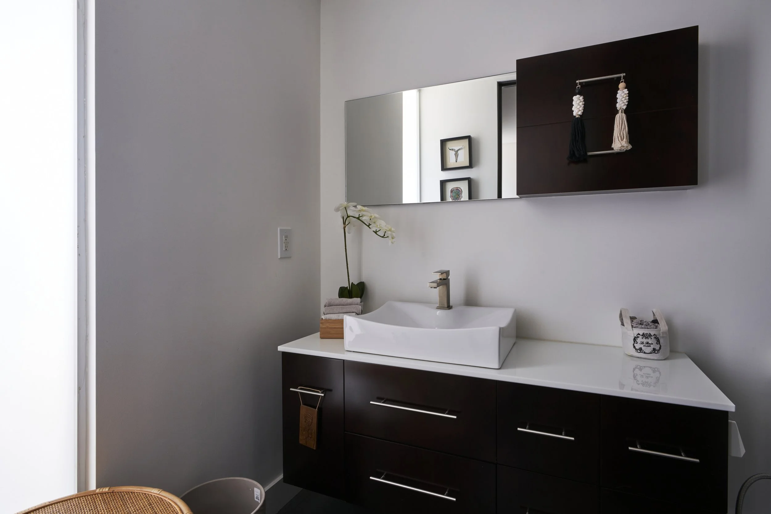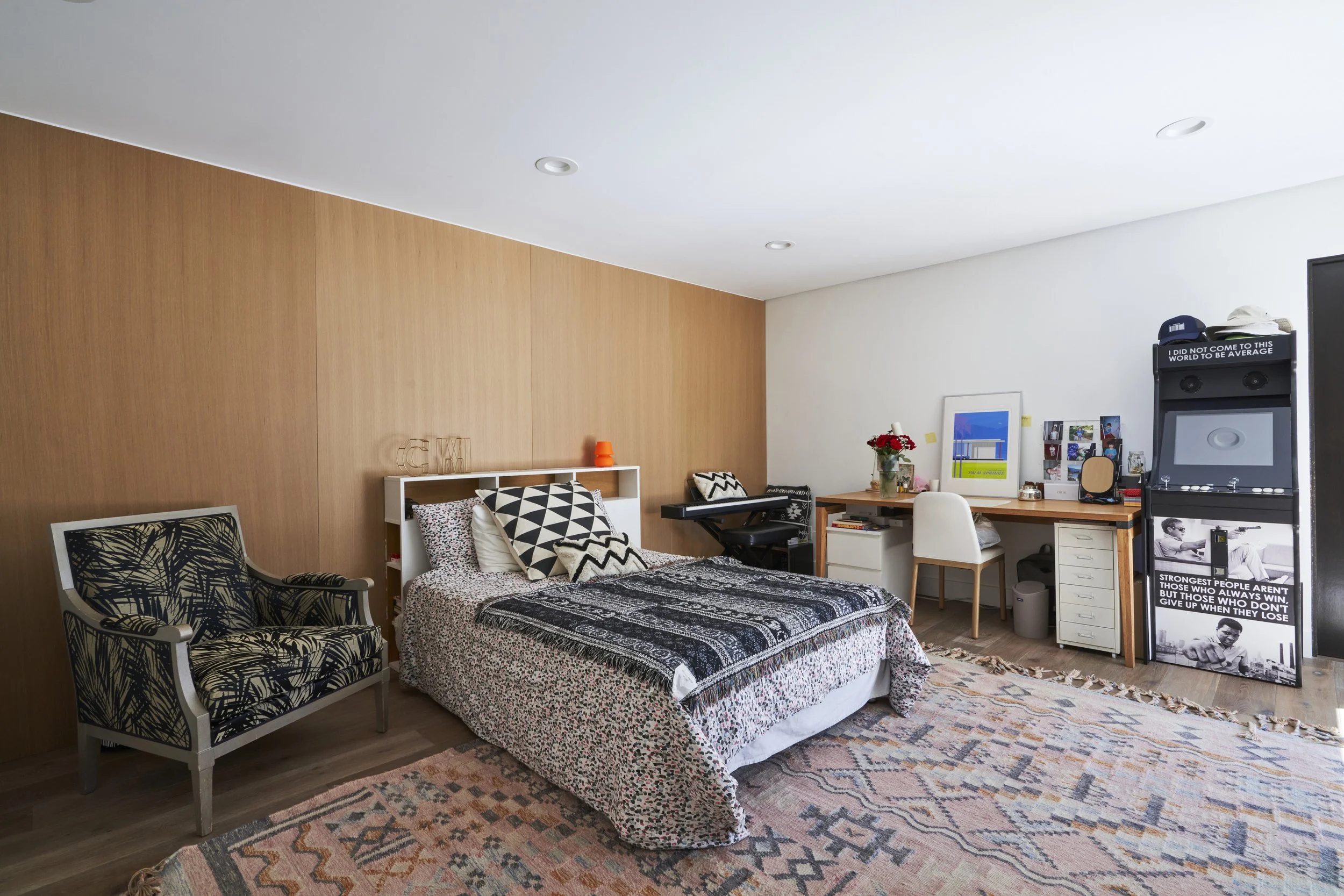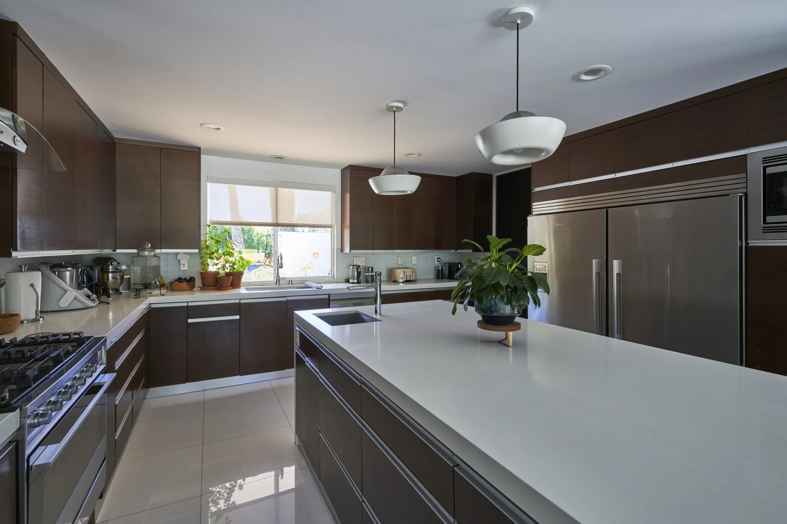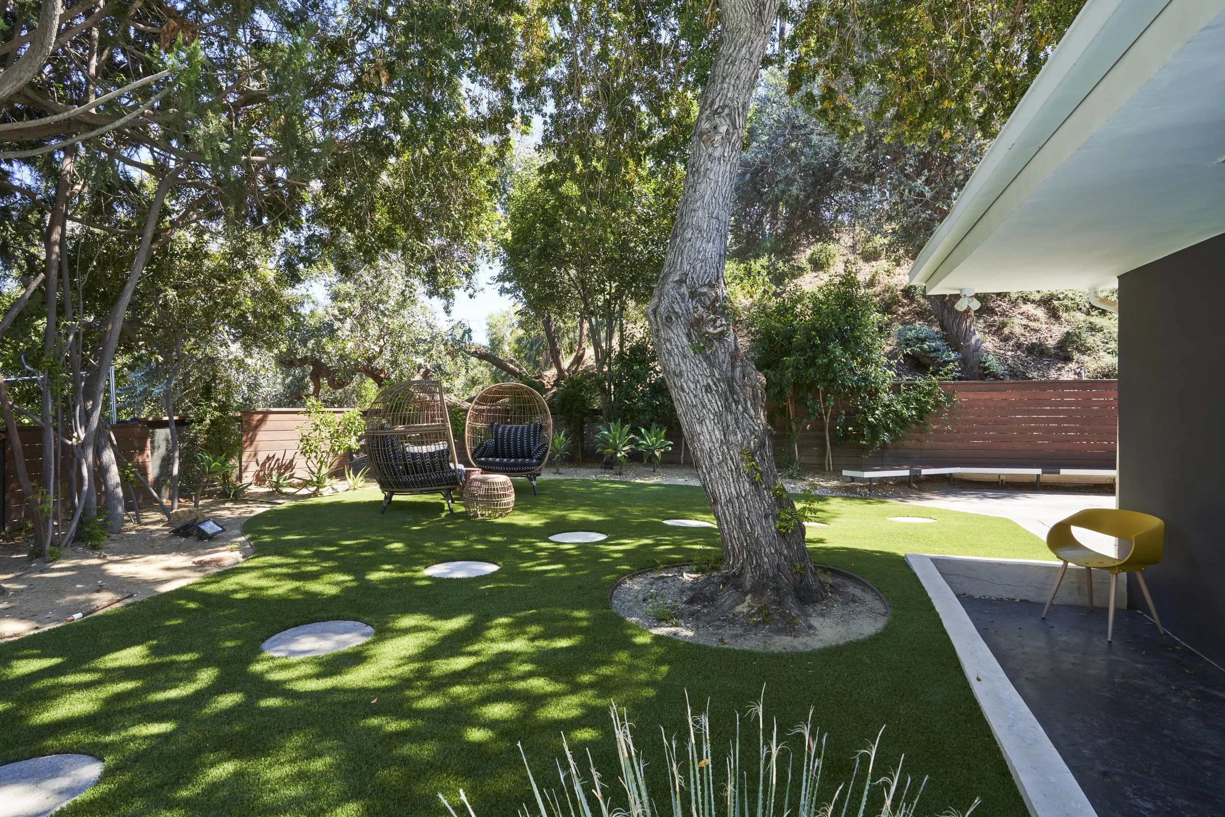 Midcentury Mansion boasts a stunning Palm Springs-like aesthetic, complete with breathtaking views of swaying palm trees, exceptional cement work, and an inviting pool area. The eclectic decor pays homage to its Mid-Century roots while also incorporating contemporary elements to ensure that the space feels fresh and current.