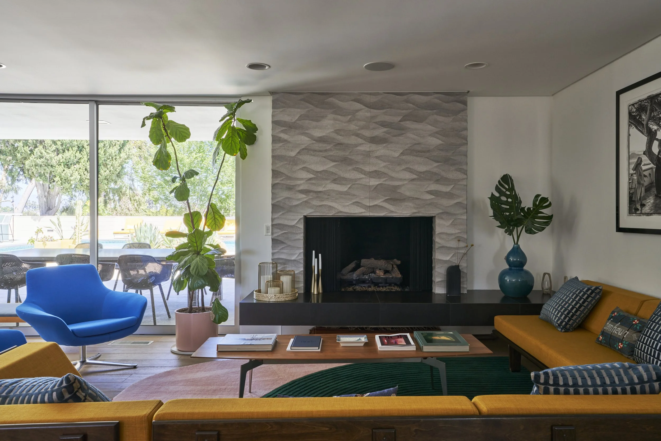 tags: midcentury, modern, pool, vintage, eclectic, ranch house, swimming pool, indoor/outdoor architecture, hot tub, outdoor kitchen, gourmet kitchen, renovated, fireplace, fountain, garden, atomic, 1950s, 1960s, pool with views, quincy jones, palm tree views, mountain views, topanga, malibu, classic