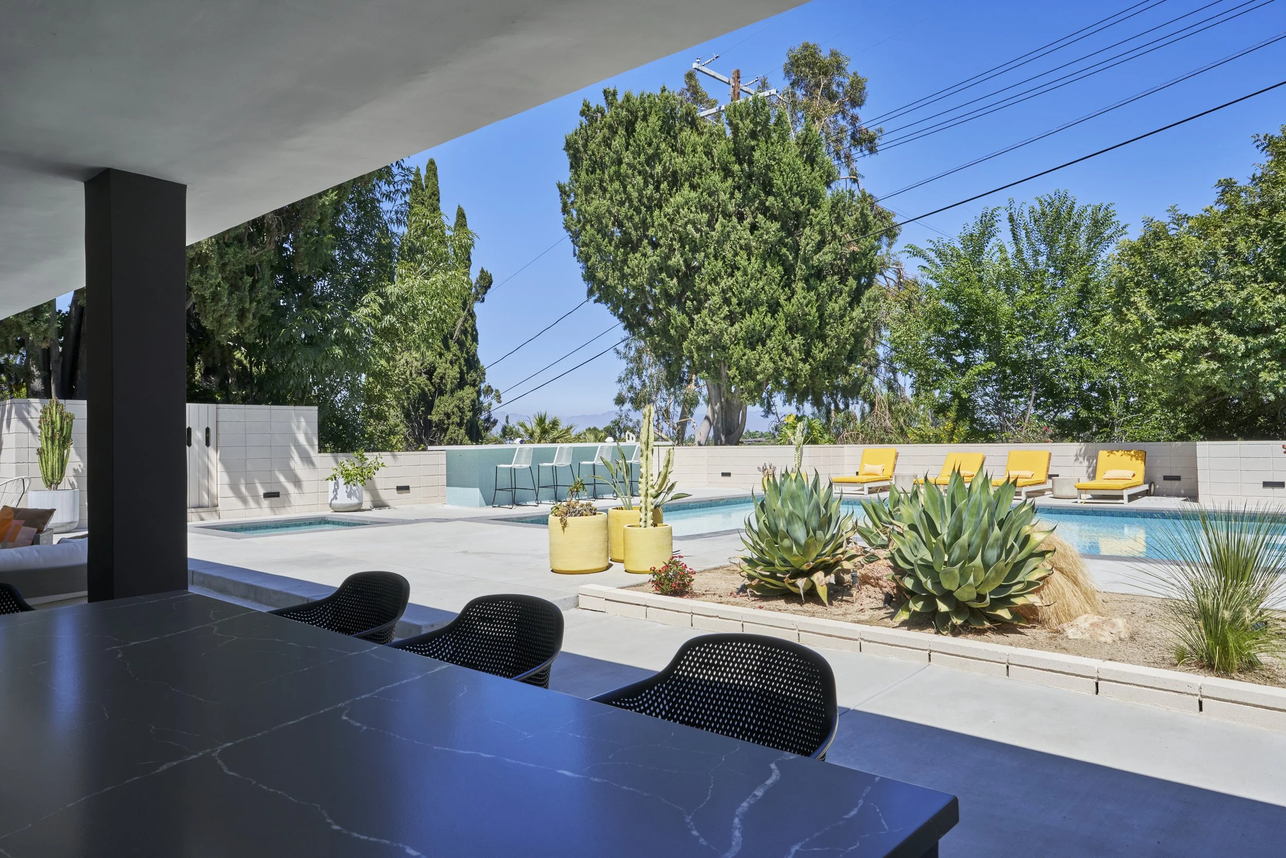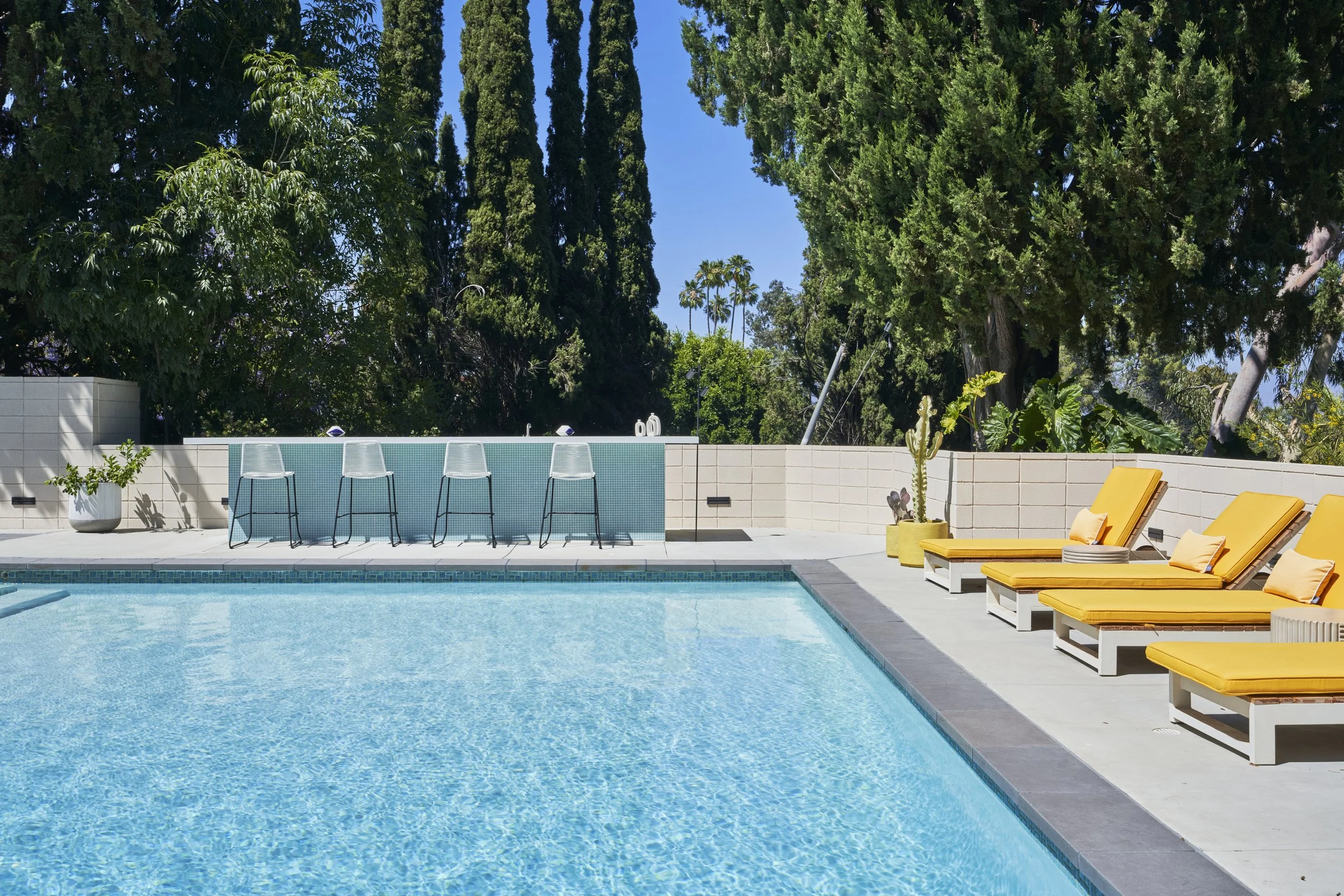 Centrally positioned around a picturesque pool and hot tub, this property features multiple setups designed for different looks and experiences, making it perfect for any kind of production or event.