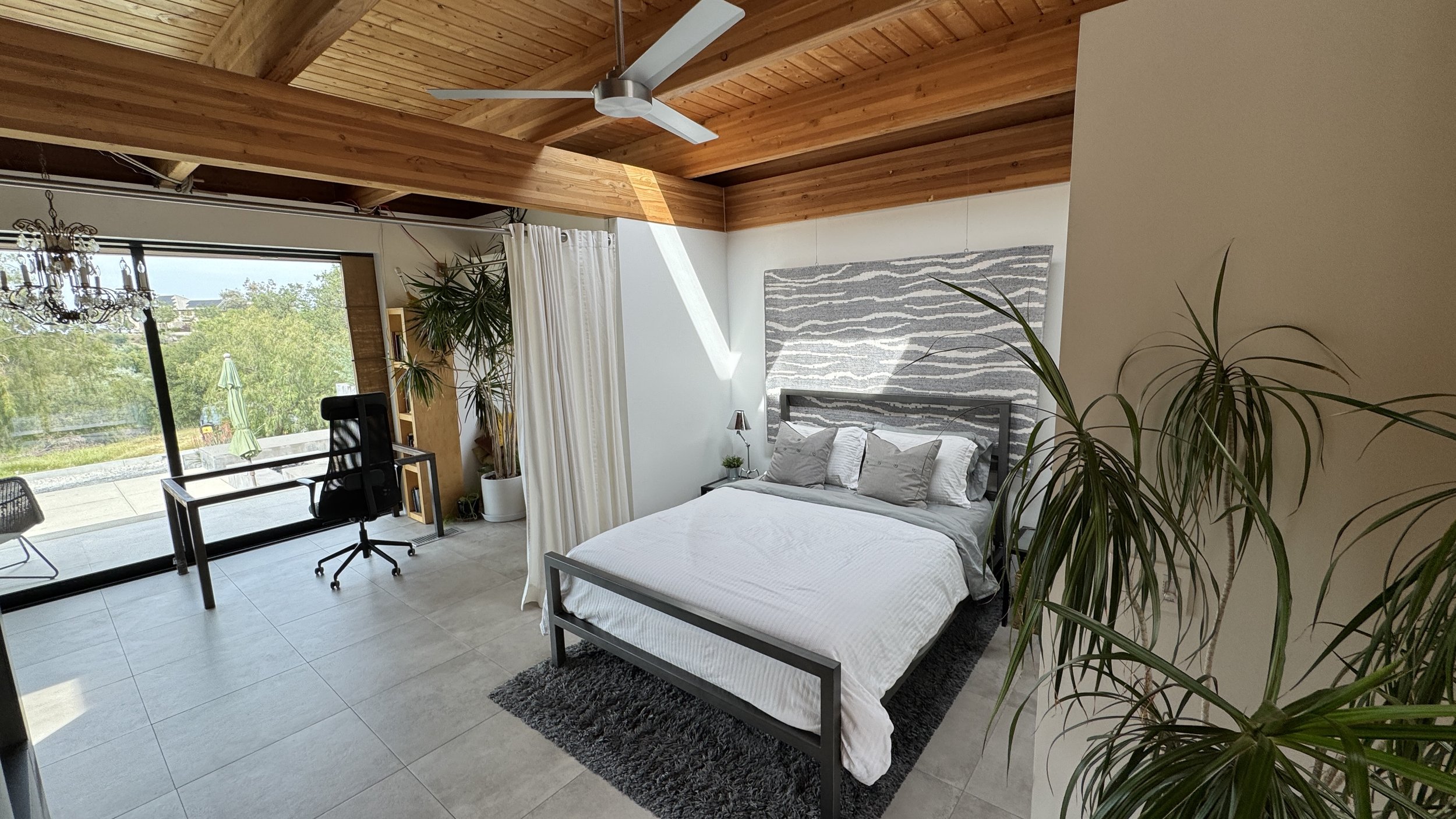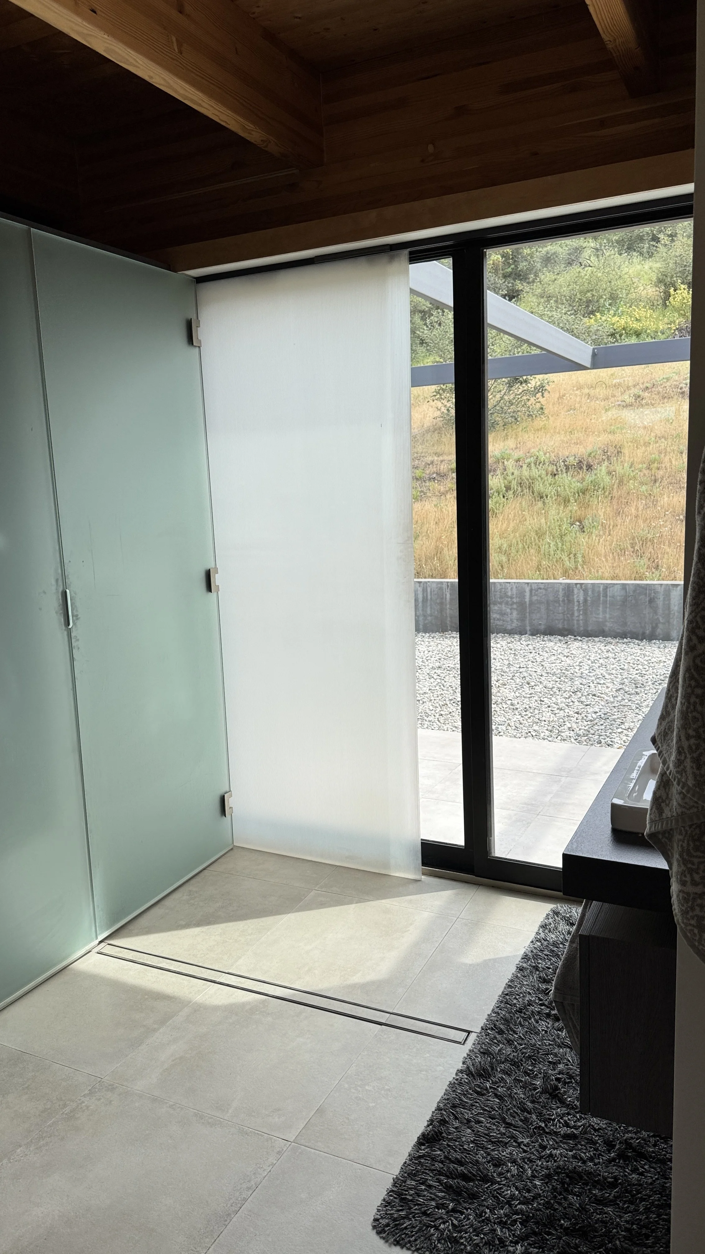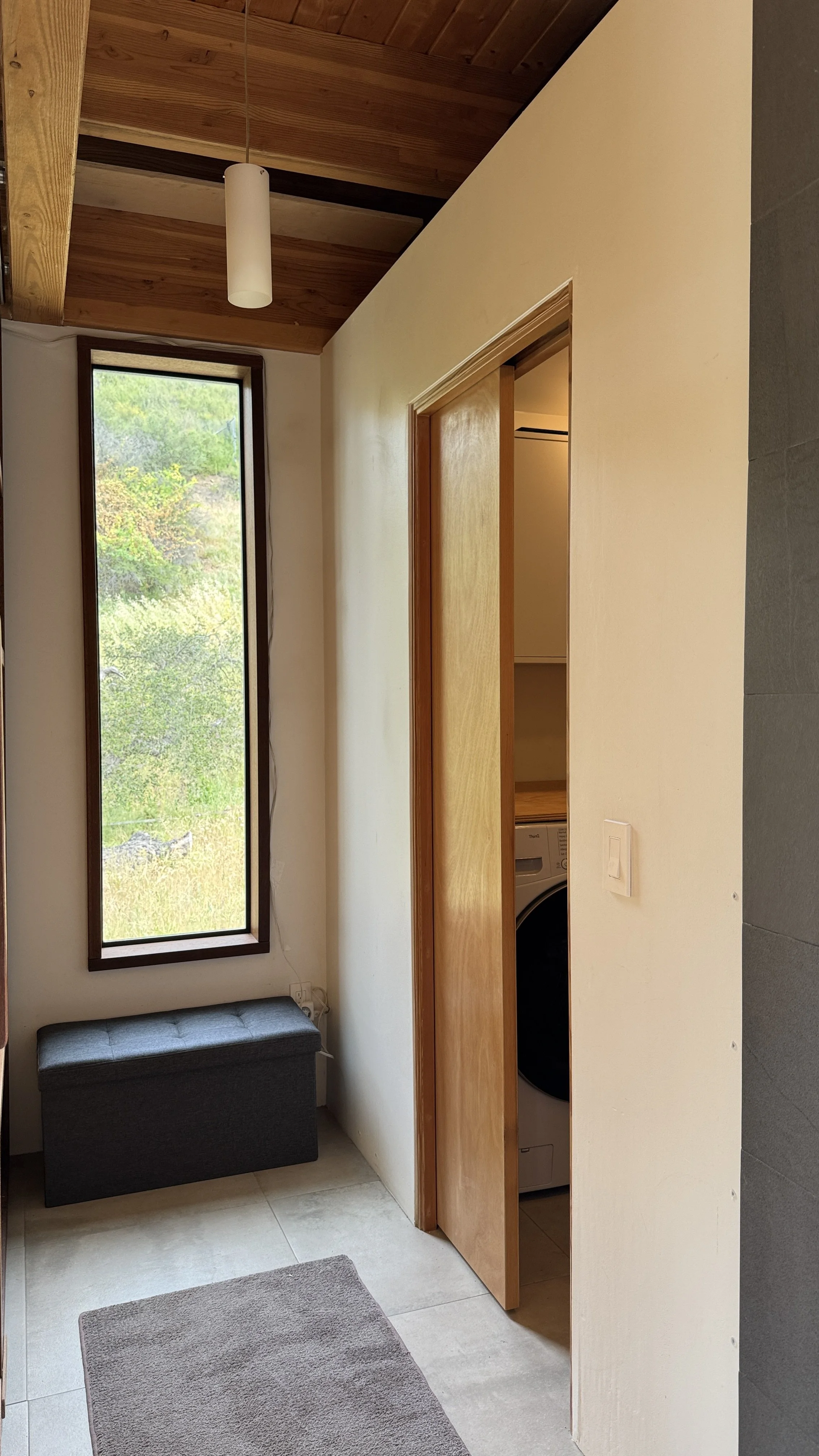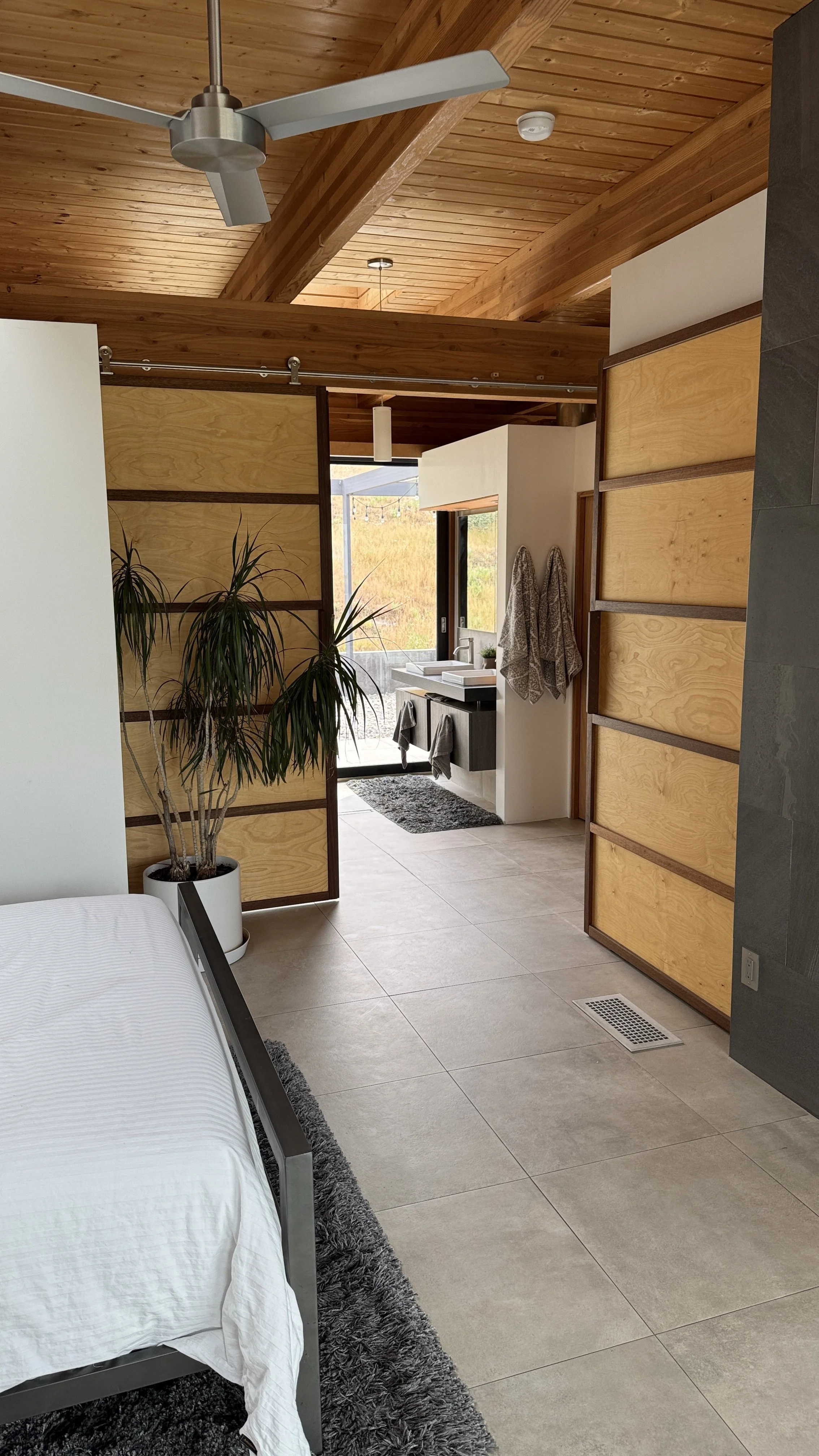 Just north of Mulholland Dr, 15 minutes to the 101 freeway, 20 minutes to downtown Malibu and beach, 45 minutes from Hollywood, the house pulls you in with its open plan interior, inspired by downtown artists lofts and Japanese Shoji style sliding walls, which redefine interior space functionality as needed per shoot. Hidden shower and sink counter are open to the exterior for unique photographic opportunities. Large window seats offer unique feature settings. The bed is open to the exterior for dramatic mood shots with full length curtains to redefine the space as needed. Glass front wall retracts for fluid indoor/outdoor transition shots.