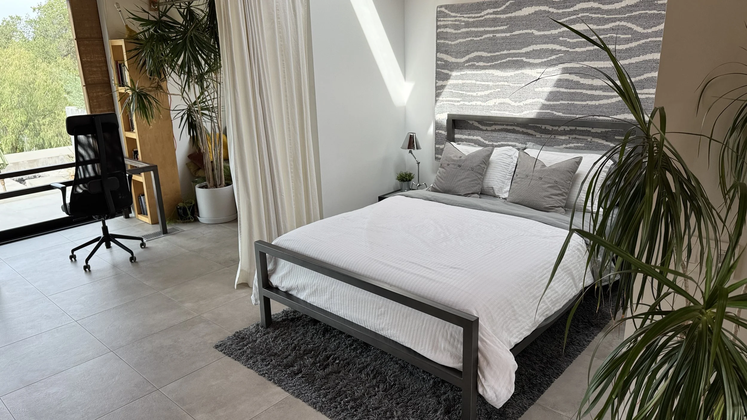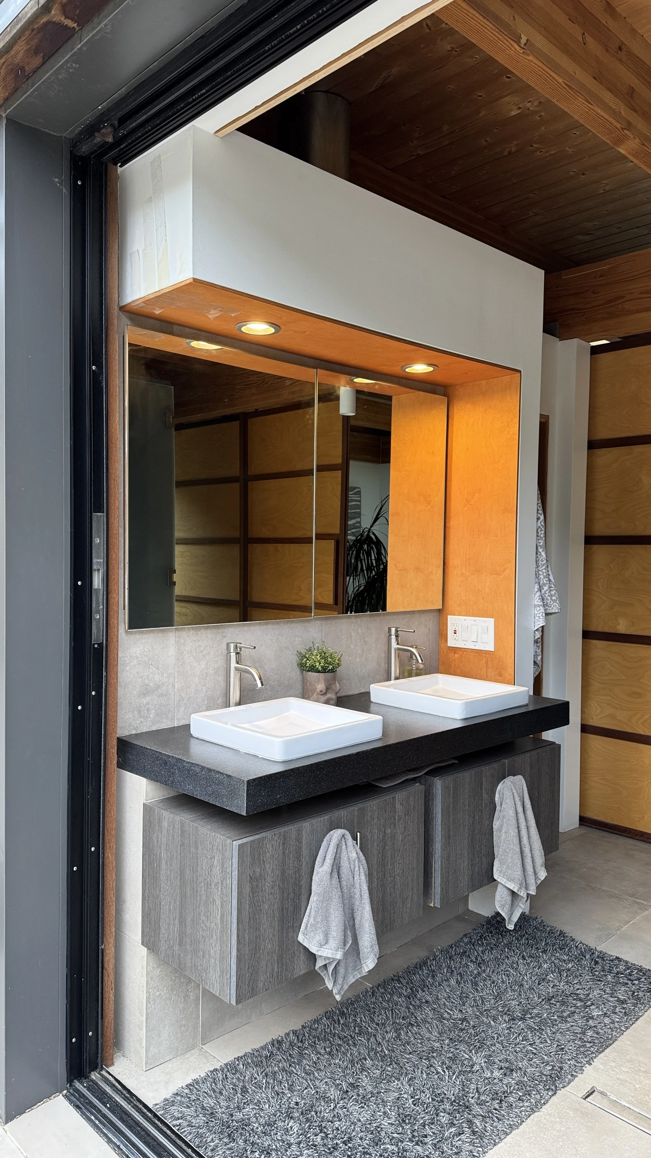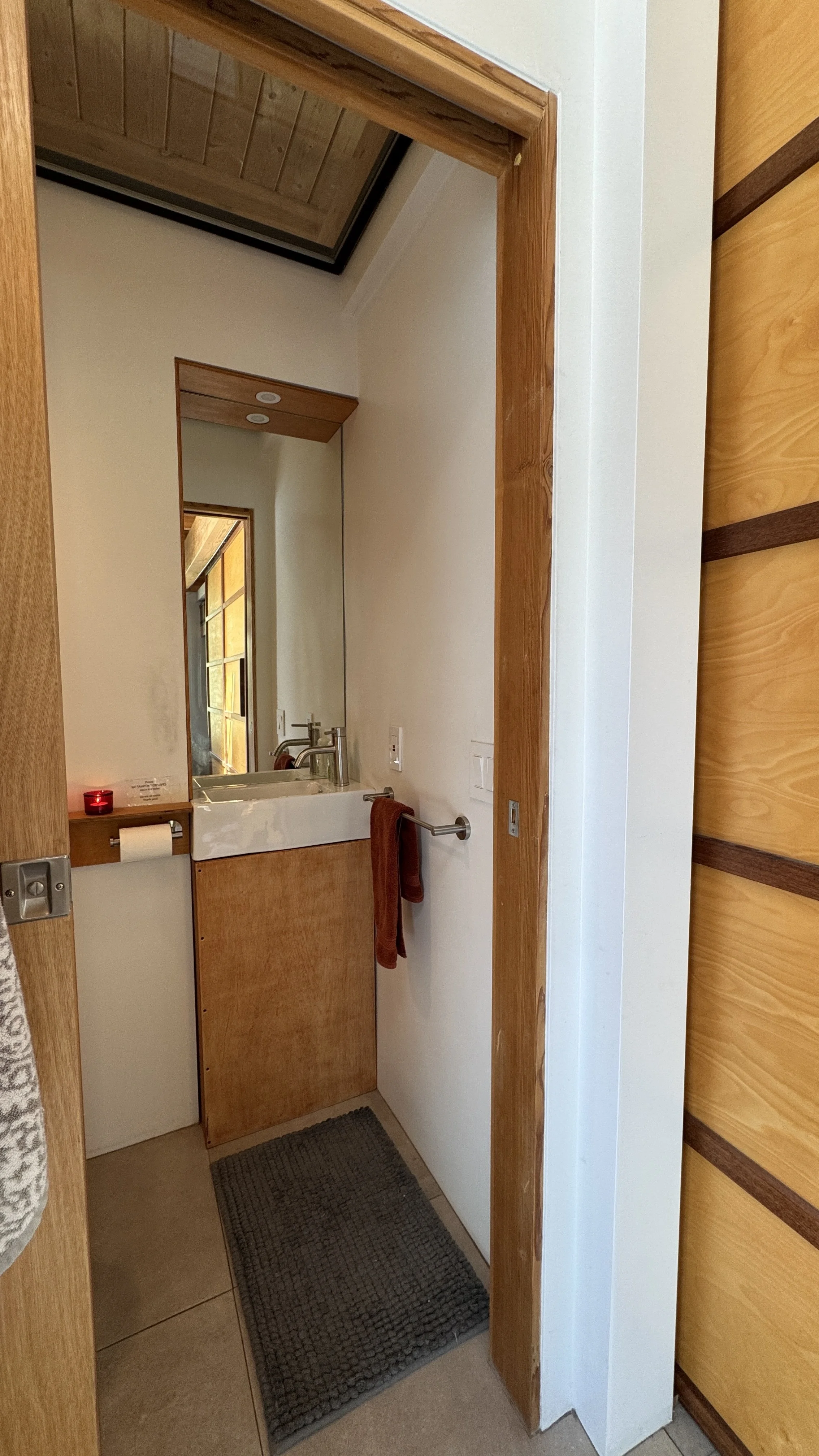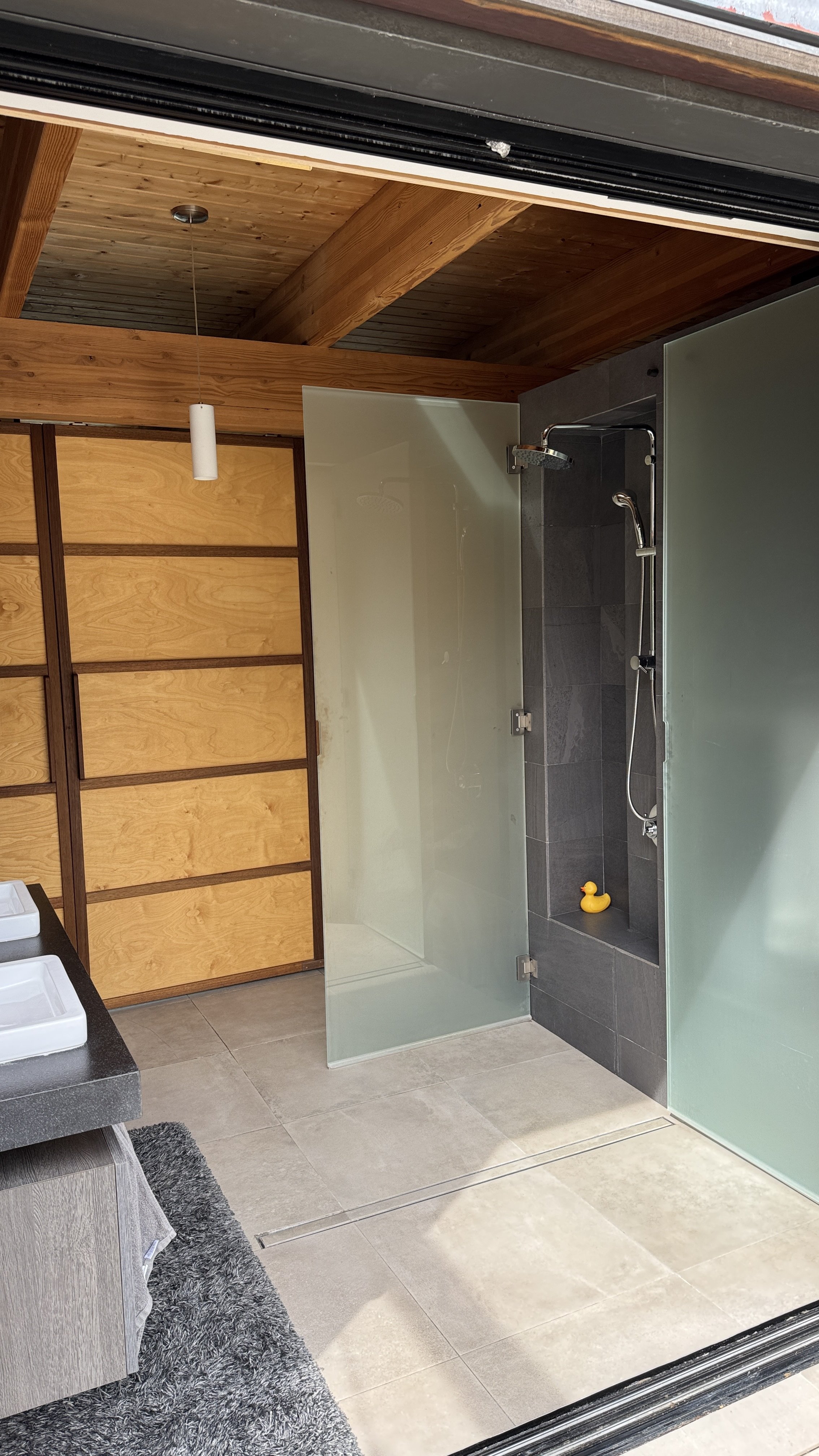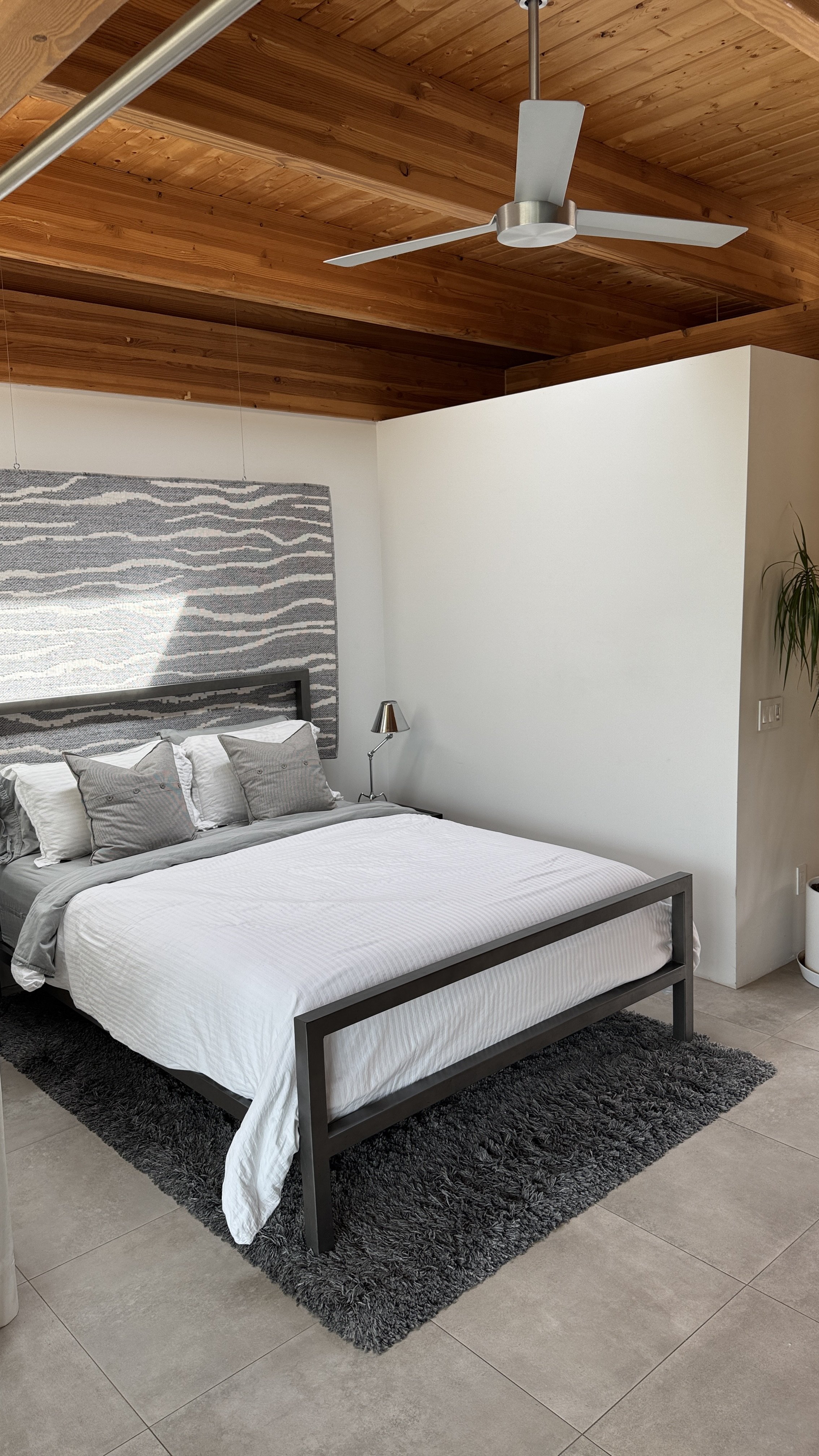 Just north of Mulholland Dr, 15 minutes to the 101 freeway, 20 minutes to downtown Malibu and beach, 45 minutes from Hollywood, the house pulls you in with its open plan interior, inspired by downtown artists lofts and Japanese Shoji style sliding walls, which redefine interior space functionality as needed per shoot. Hidden shower and sink counter are open to the exterior for unique photographic opportunities. Large window seats offer unique feature settings. The bed is open to the exterior for dramatic mood shots with full length curtains to redefine the space as needed. Glass front wall retracts for fluid indoor/outdoor transition shots.