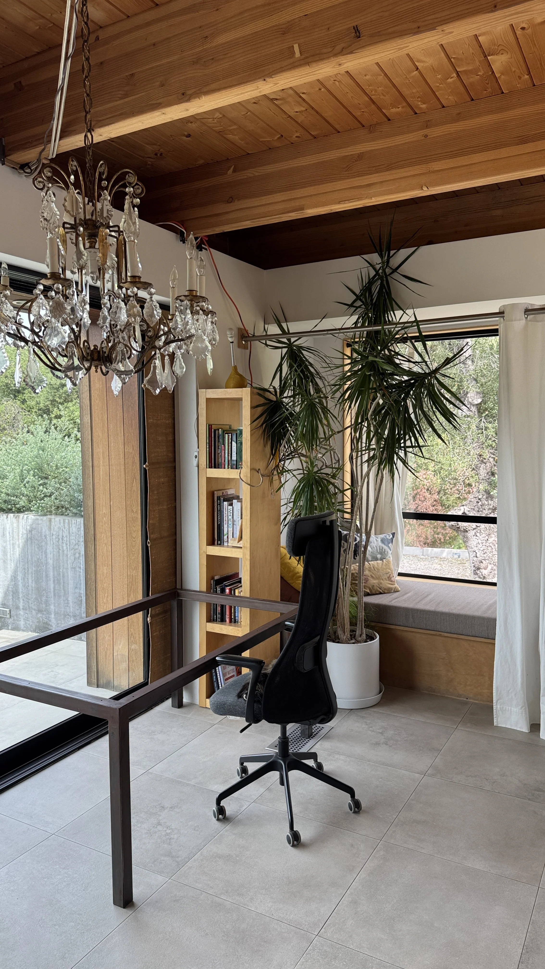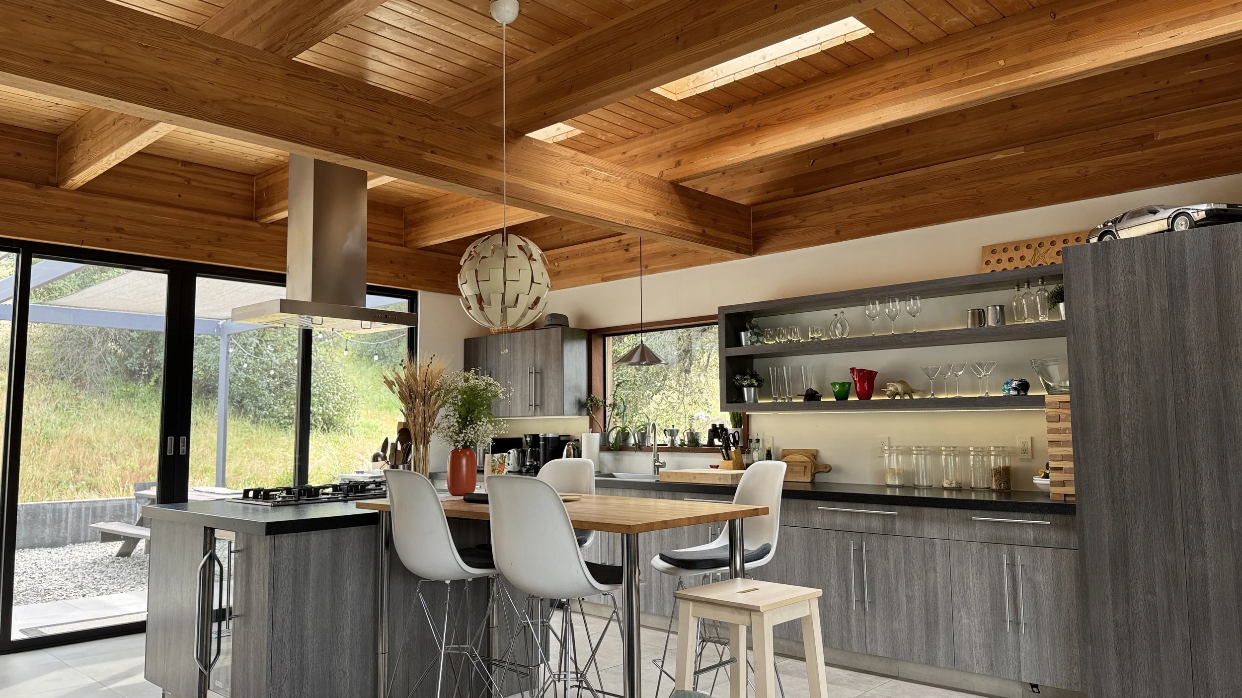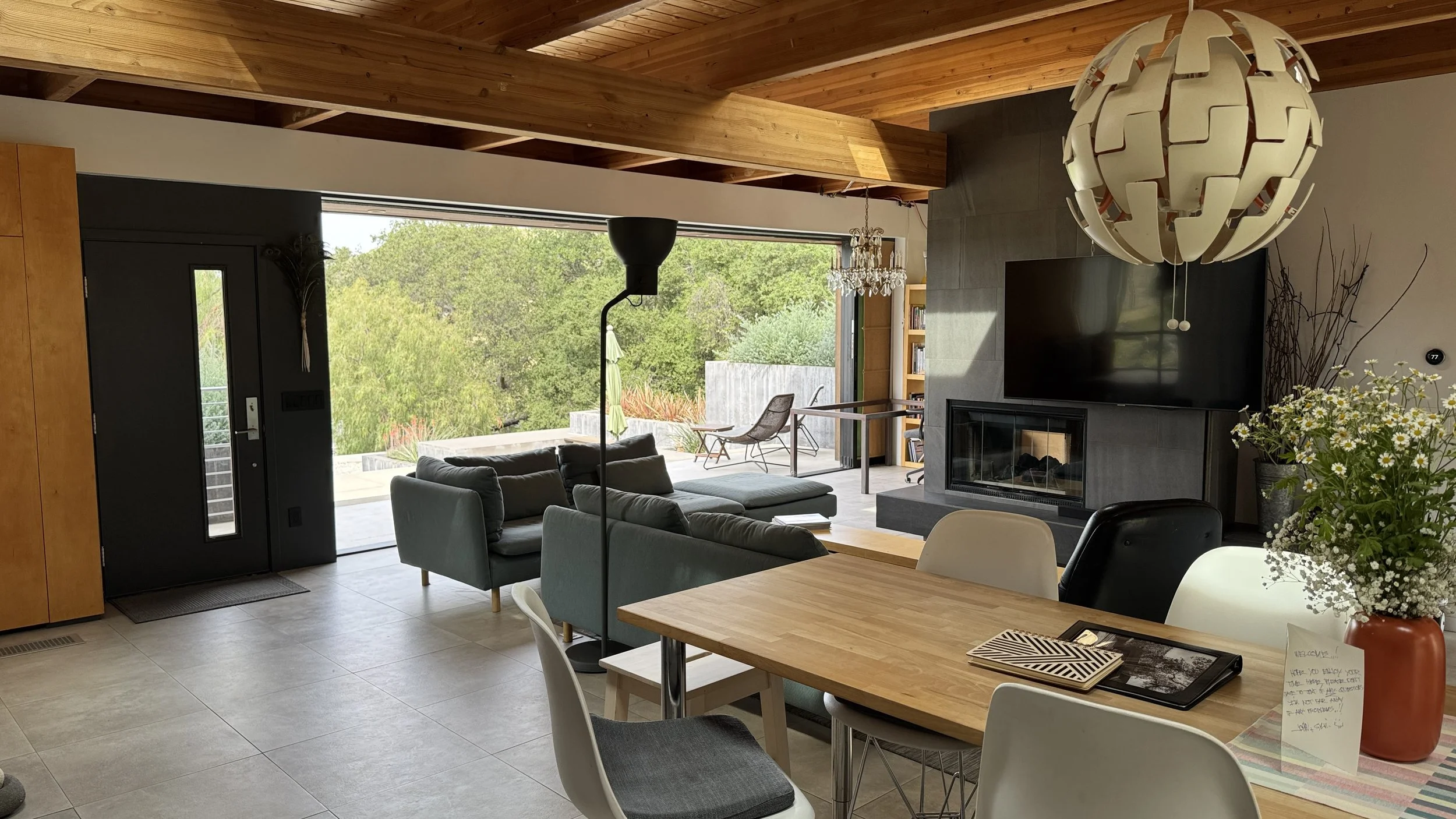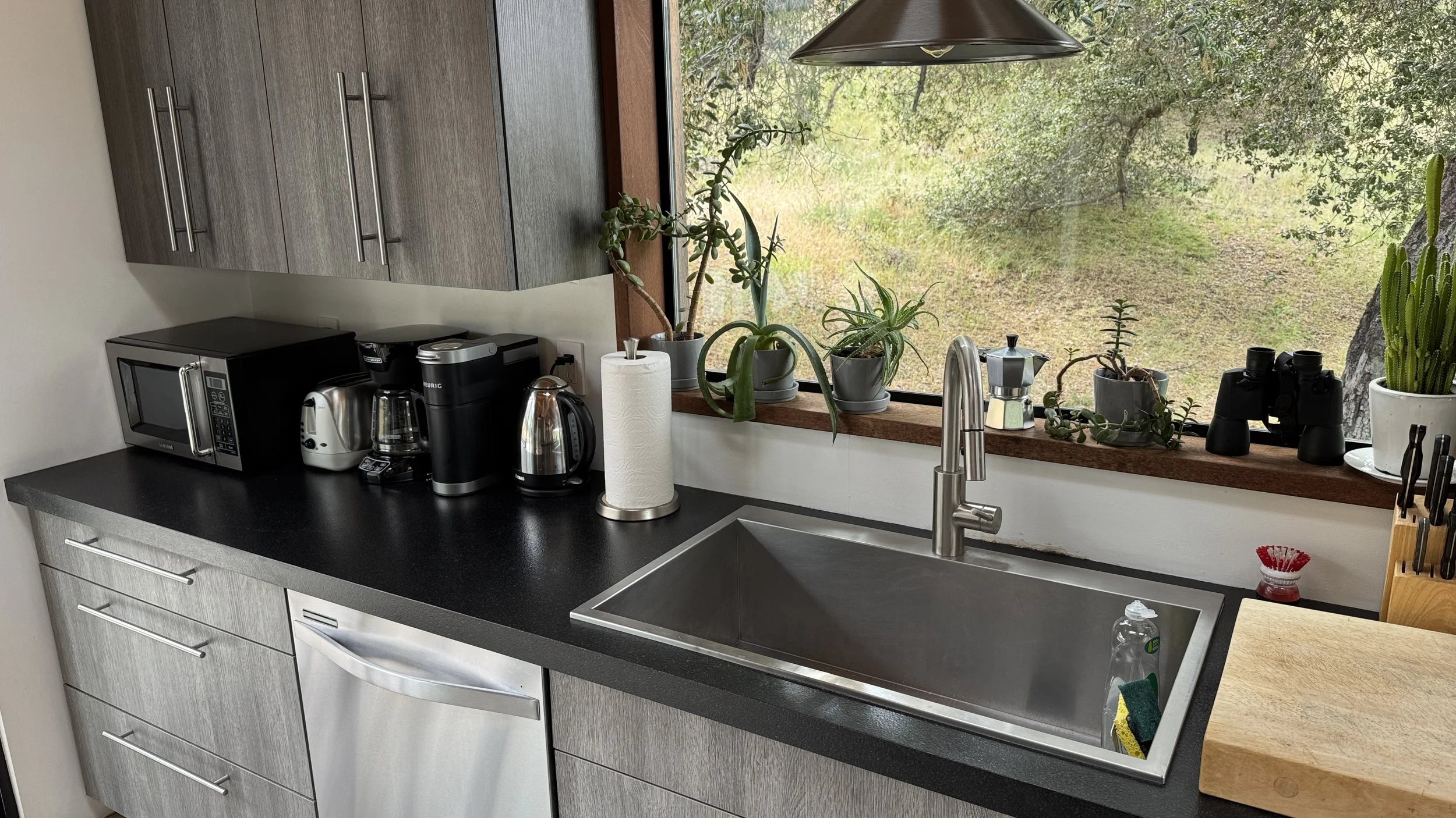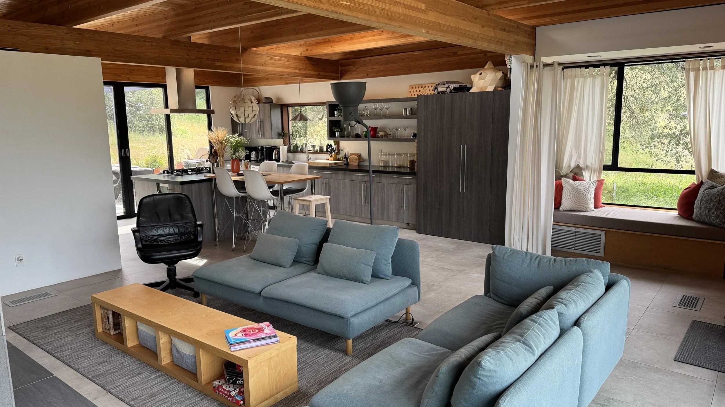 Just north of Mulholland Dr, 15 minutes to the 101 freeway, 20 minutes to downtown Malibu and beach, 45 minutes from Hollywood, the house pulls you in with its open plan interior, inspired by downtown artists lofts and Japanese Shoji style sliding walls, which redefine interior space functionality as needed per shoot. Hidden shower and sink counter are open to the exterior for unique photographic opportunities. Large window seats offer unique feature settings. The bed is open to the exterior for dramatic mood shots with full length curtains to redefine the space as needed. Glass front wall retracts for fluid indoor/outdoor transition shots.