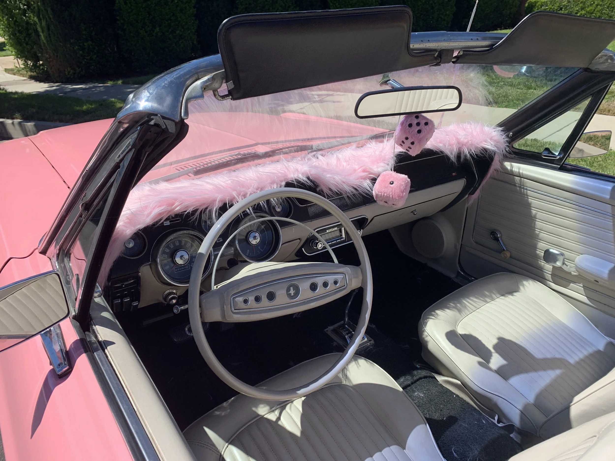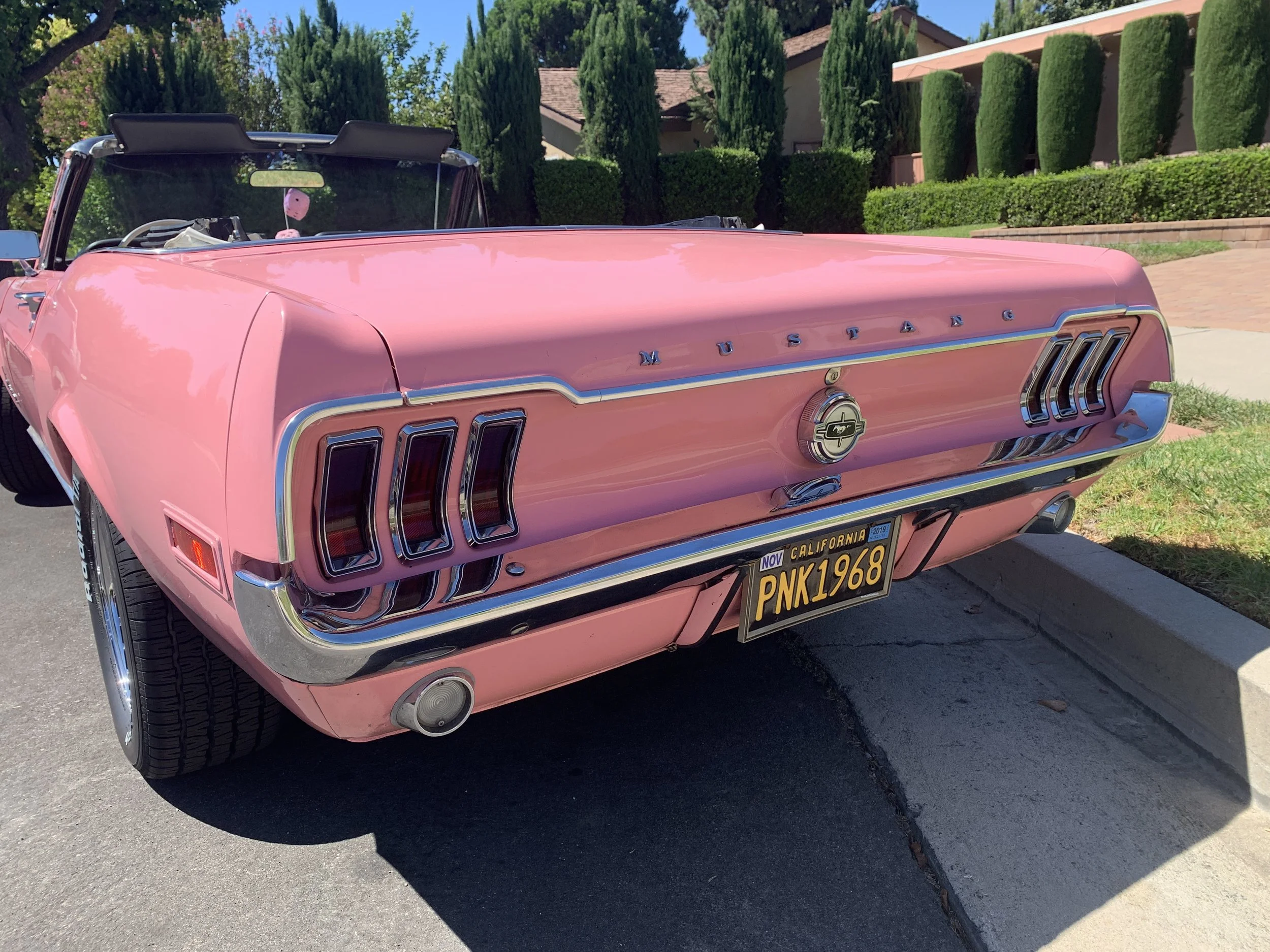 The house also has a 1968 pink convertible Mustang available for rent. The garage has two motorcycles. One 2014 Triumph Bonneville and one 1977 Harley Ironhead Chopper. Please inquire for hourly rates.
