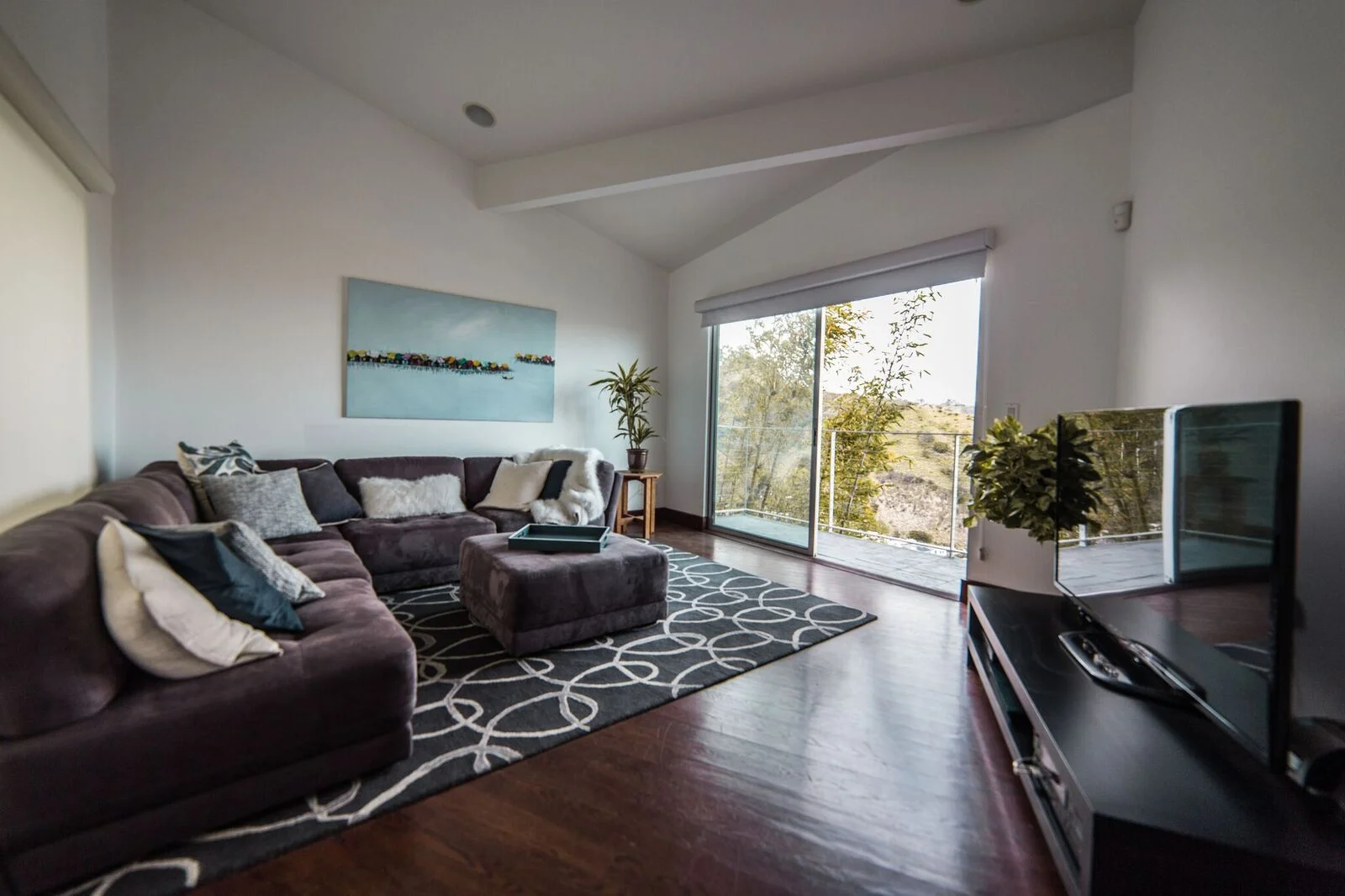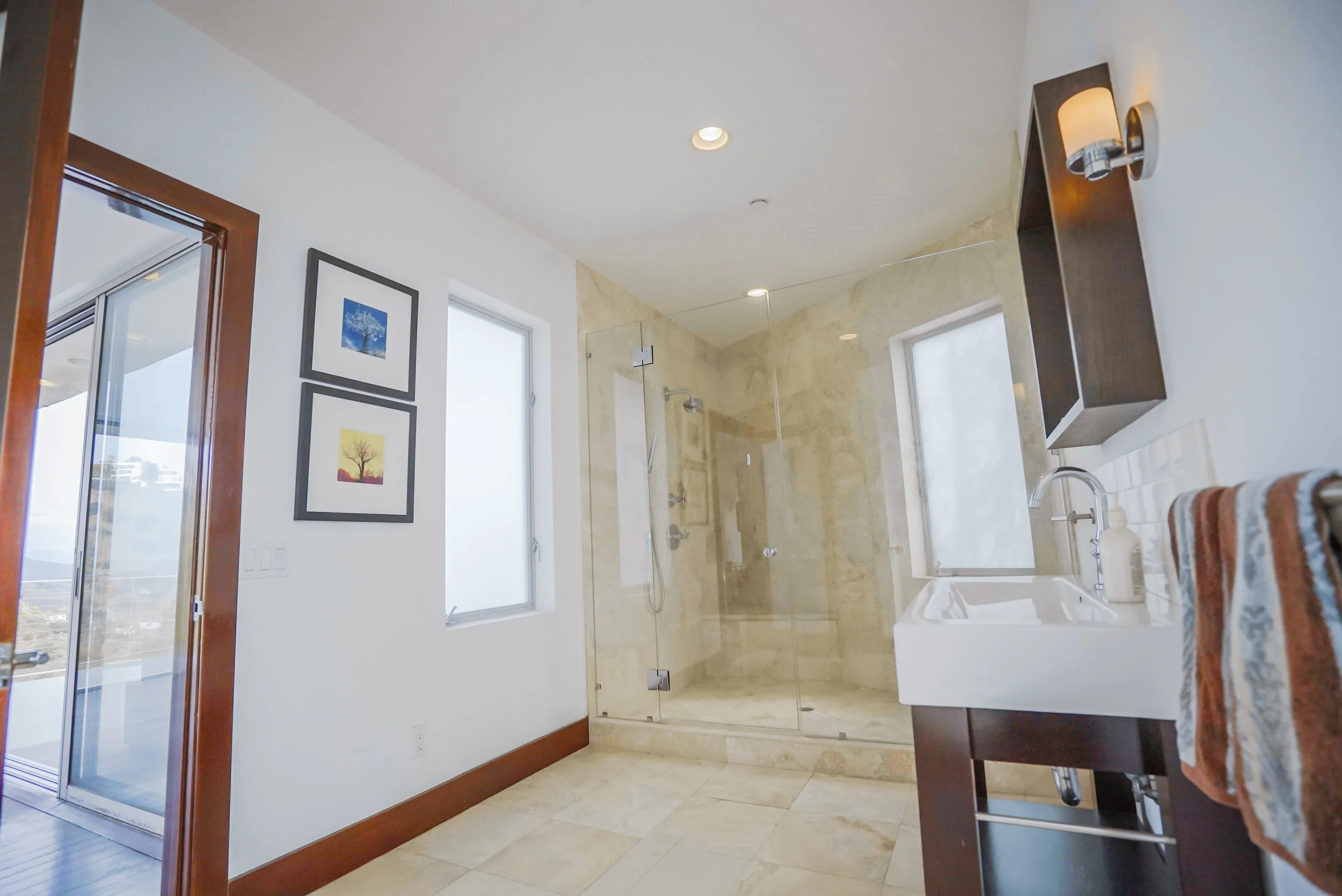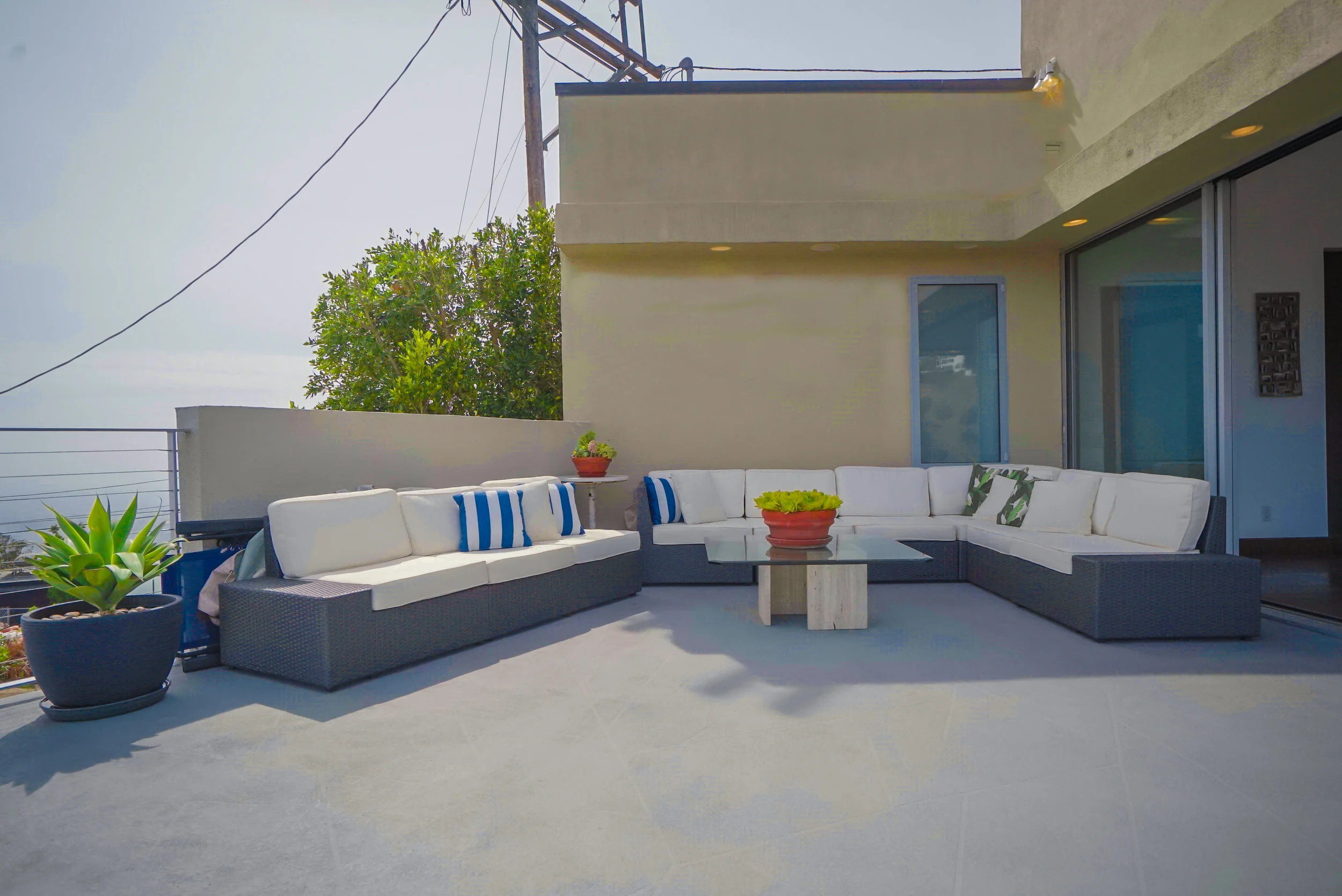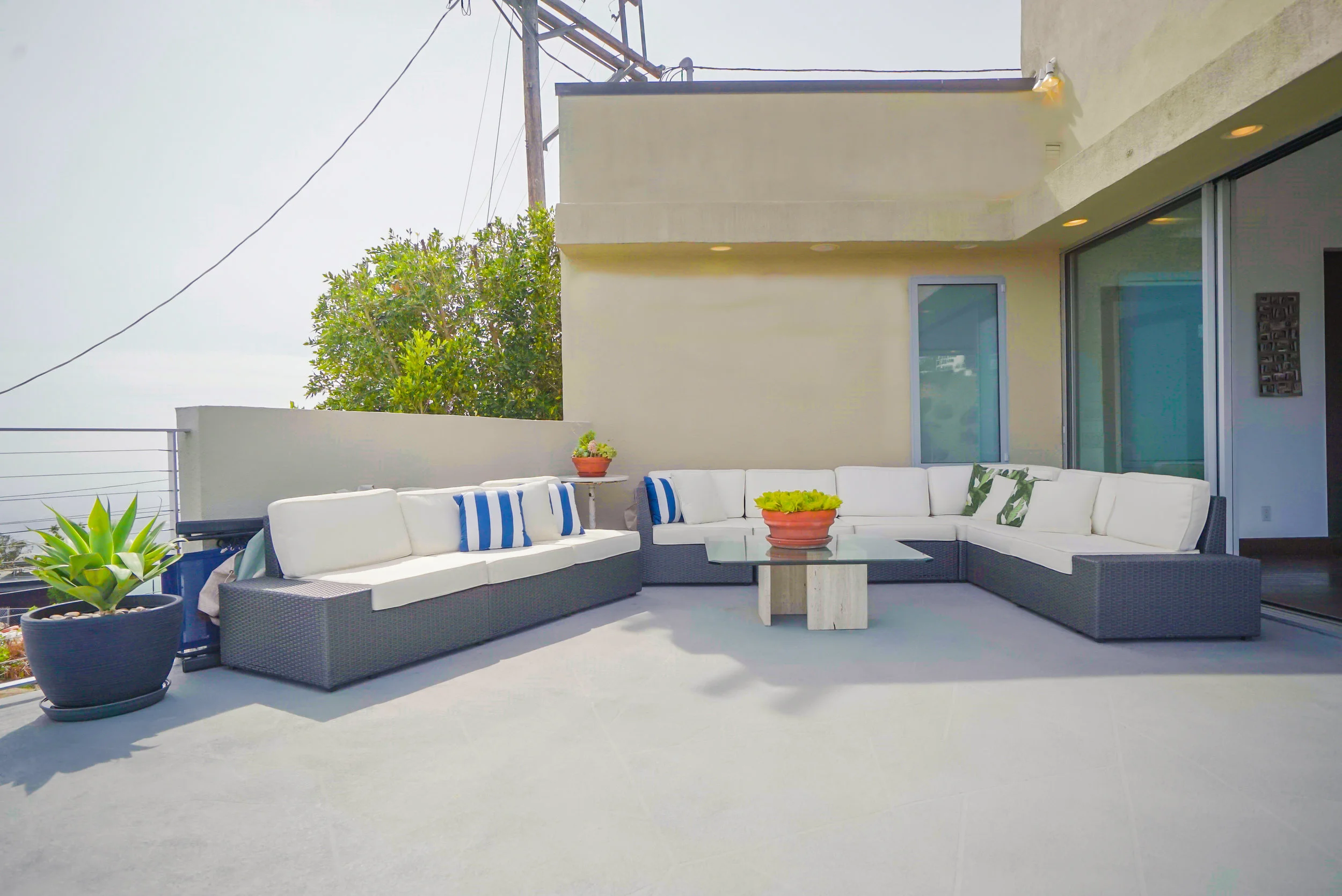 The main residence boasts over 3,000 square feet of living space, and has a clean, open feel with minimalist aesthetics. The main floor has an open floor plan with sliding doors that open to an expansive deck with breathtaking 360-degree views of Los Angeles.