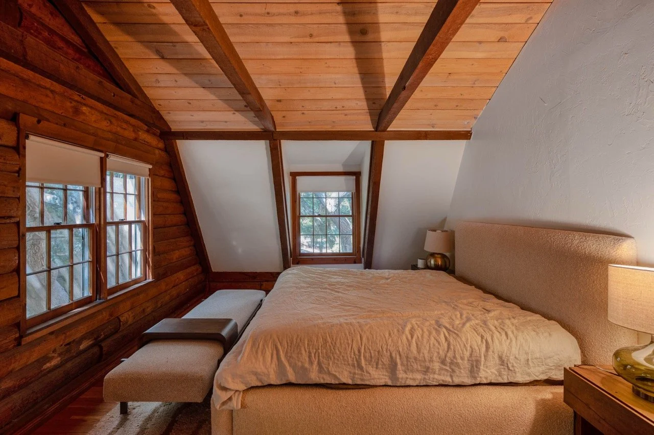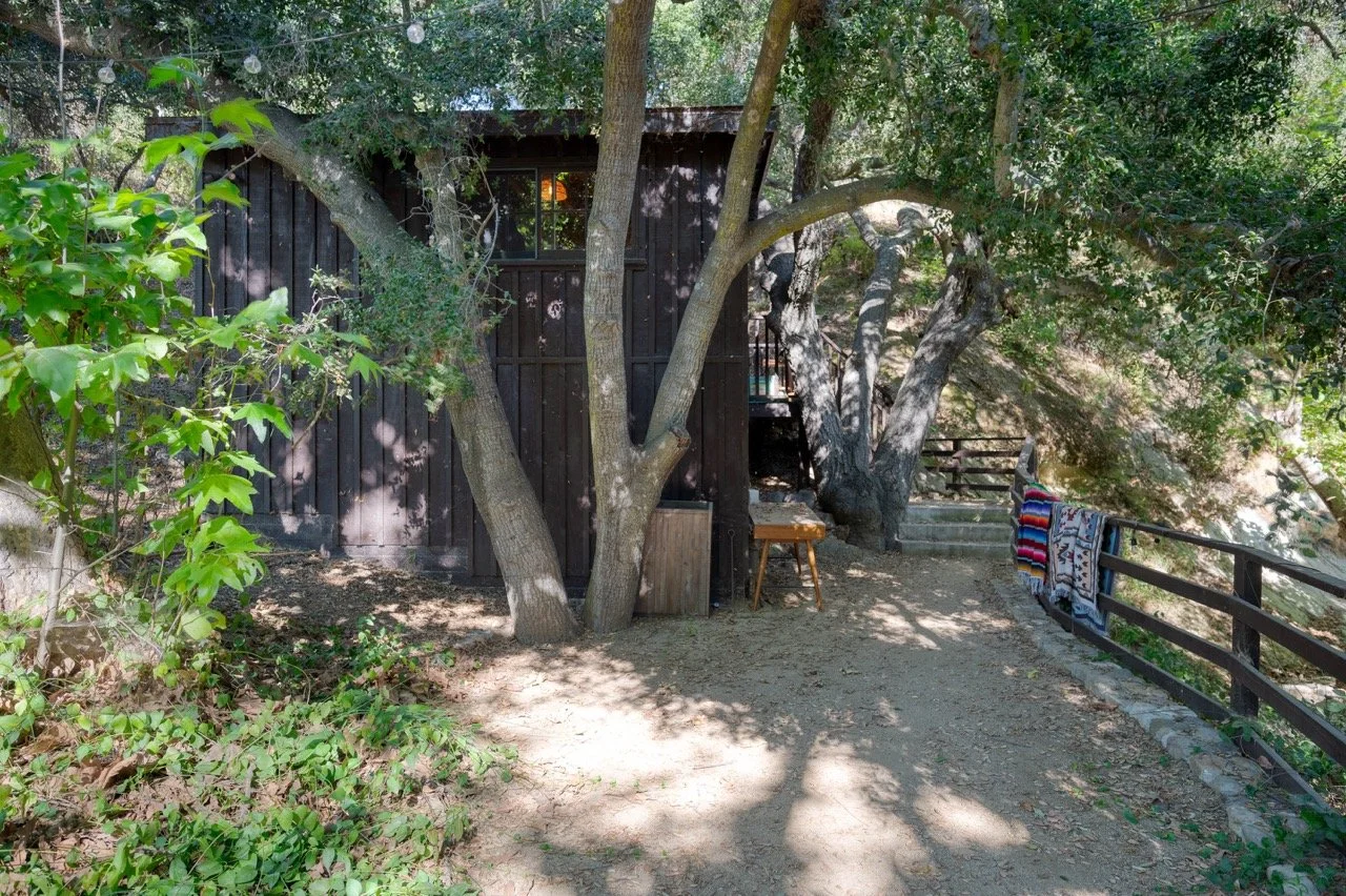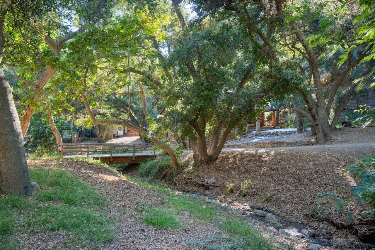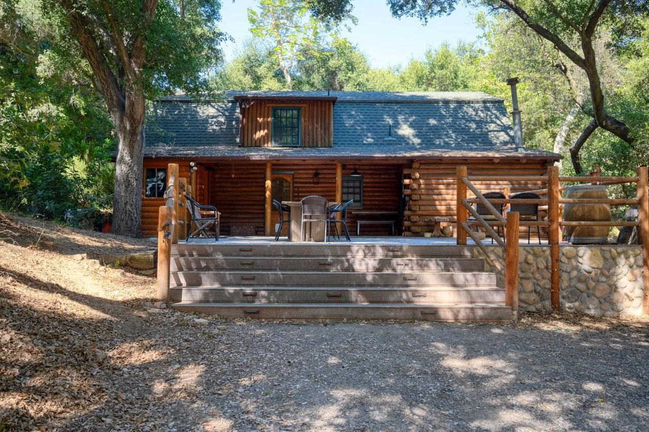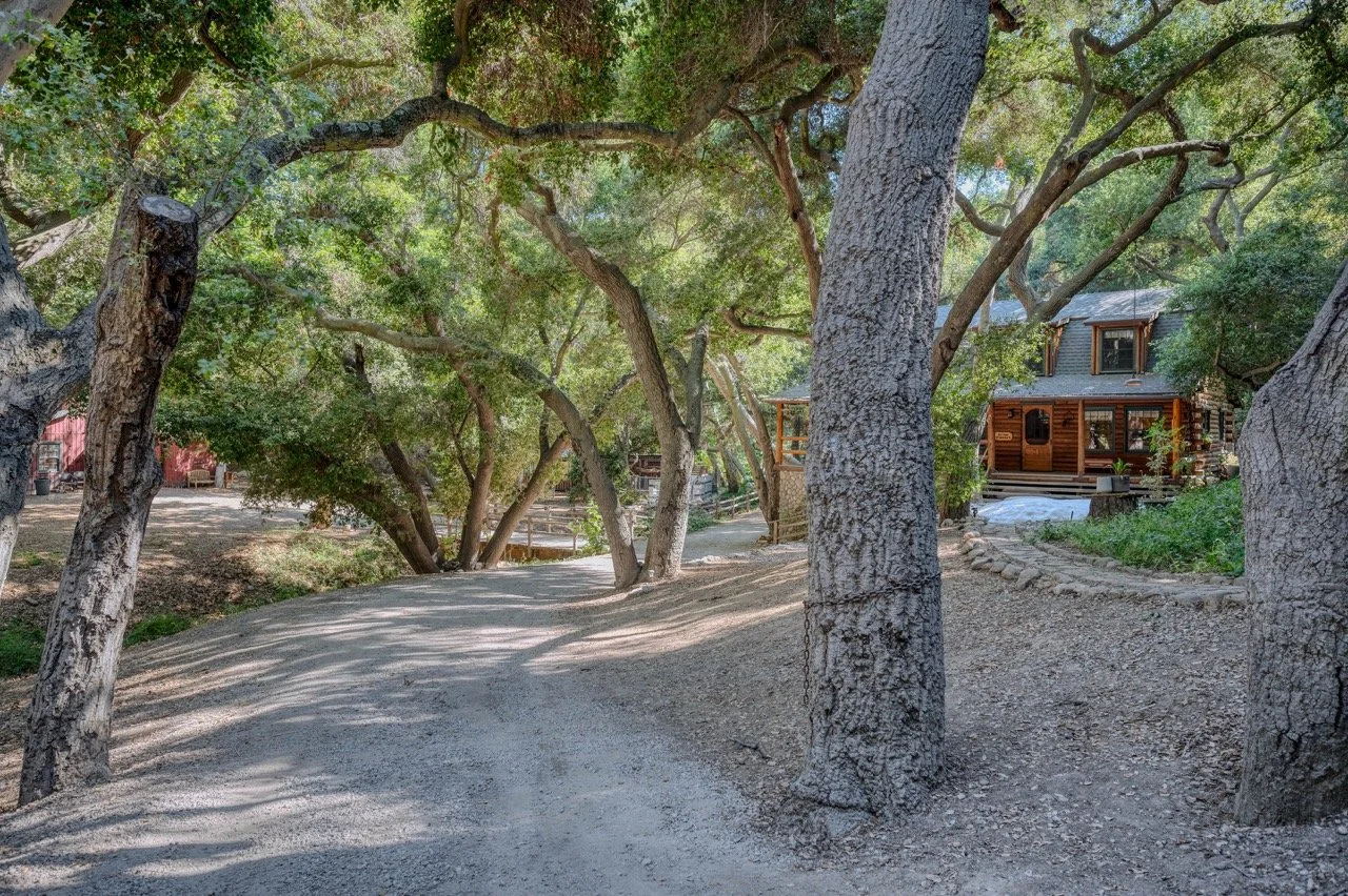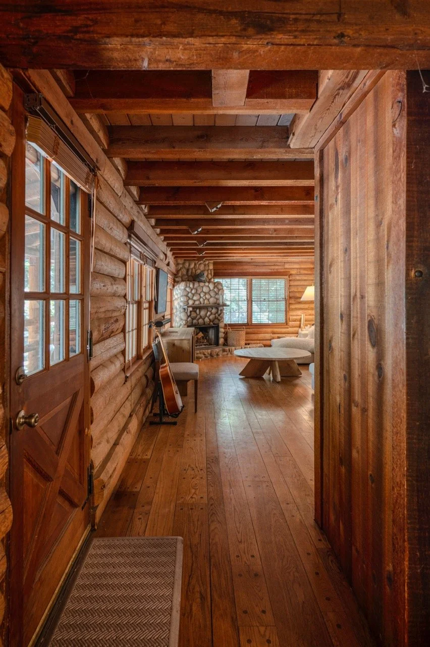 Craftsman Style log cabin nestled in three acres of private woodland just 30 minutes from Los Angeles, this stunning cabin offers productions an exceptional blend of rustic charm and modern sophistication. Featured in acclaimed shows including "This Is Us" and "Parks and Recreation," this versatile location delivers the perfect backdrop for everything from intimate character moments to expansive outdoor scenes. The cabin's modern rustic aesthetic is defined by dramatic wraparound windows that flood the space with natural light while offering seamless indoor-outdoor flow. With soaring ceilings, exposed beams features a river rock fireplace as the focal point. In the center of the cabin is a historic kitchen with vintage details and original cabinetry. Cozy seating nooks are scattered throughout filled with plants and texture. Plenty of natural light shines inside the home at different parts of the day and the house is illuminated with a warm golden glow. Outside you have the option of shooting in full sun or beneath the tree canopies with speckled or direct sunlight.