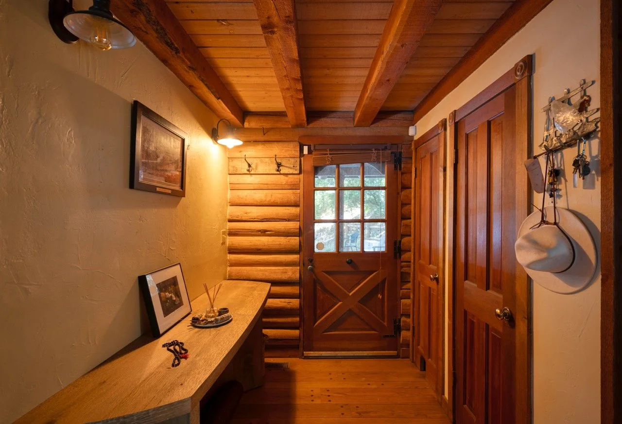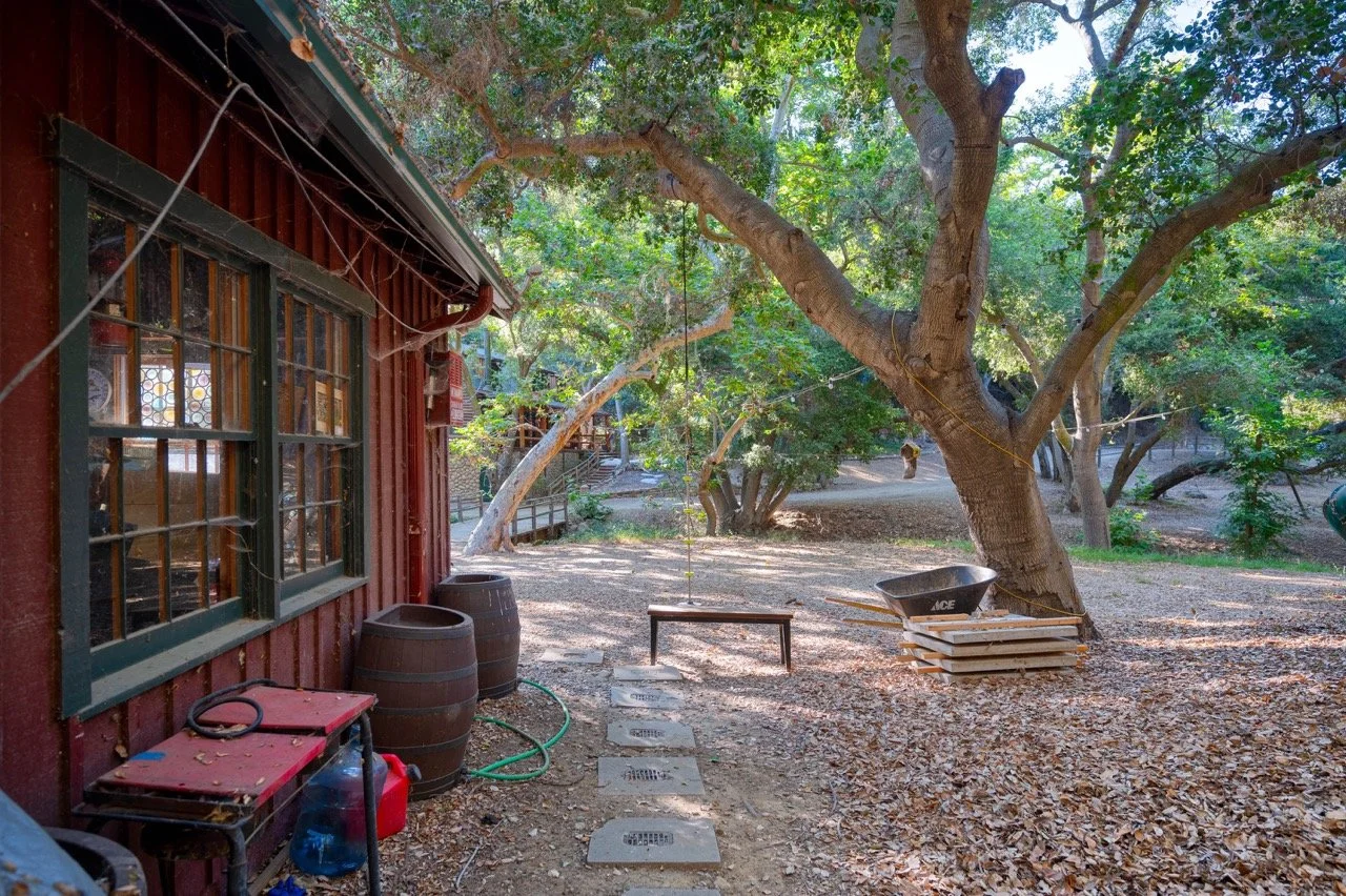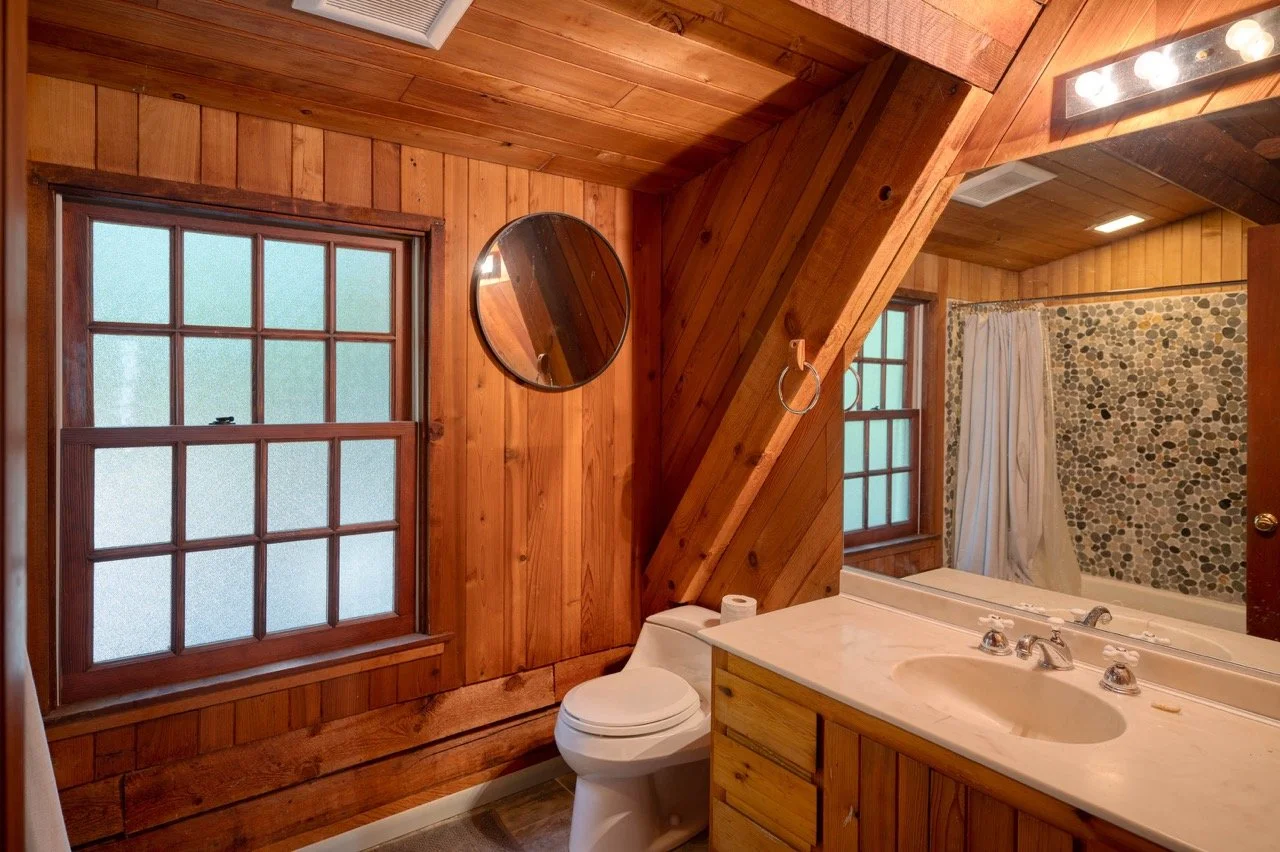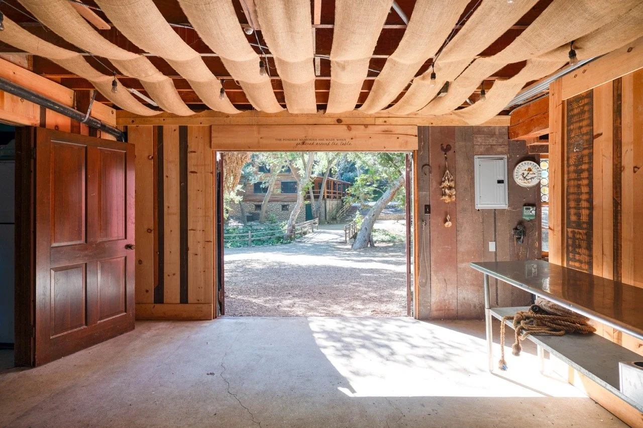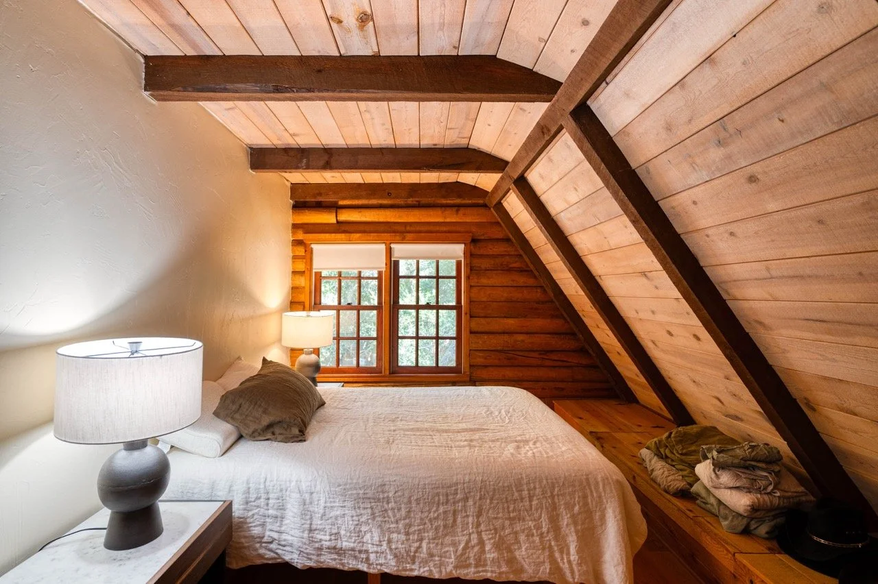 Craftsman Style log cabin nestled in three acres of private woodland just 30 minutes from Los Angeles, this stunning cabin offers productions an exceptional blend of rustic charm and modern sophistication. Featured in acclaimed shows including "This Is Us" and "Parks and Recreation," this versatile location delivers the perfect backdrop for everything from intimate character moments to expansive outdoor scenes. The cabin's modern rustic aesthetic is defined by dramatic wraparound windows that flood the space with natural light while offering seamless indoor-outdoor flow. With soaring ceilings, exposed beams features a river rock fireplace as the focal point. In the center of the cabin is a historic kitchen with vintage details and original cabinetry. Cozy seating nooks are scattered throughout filled with plants and texture. Plenty of natural light shines inside the home at different parts of the day and the house is illuminated with a warm golden glow. Outside you have the option of shooting in full sun or beneath the tree canopies with speckled or direct sunlight.