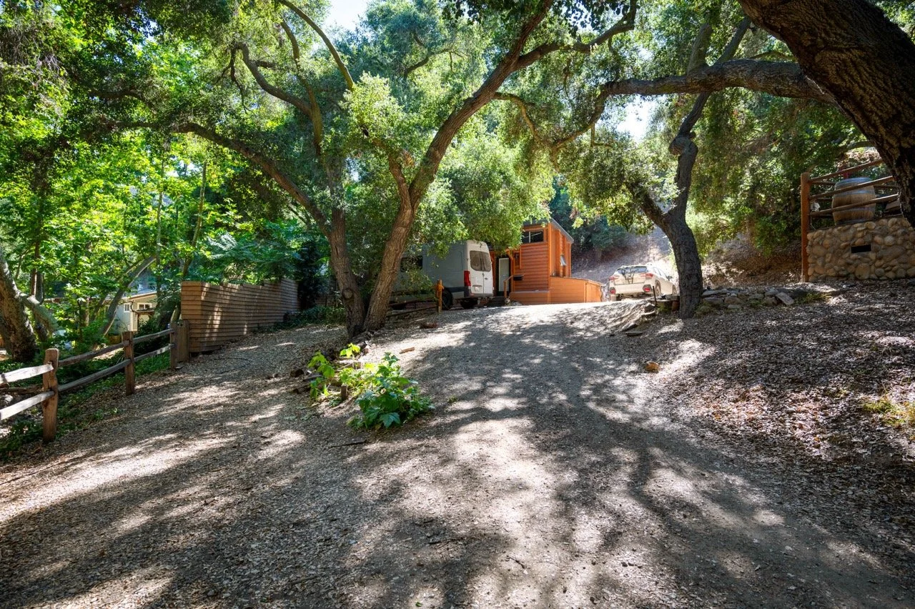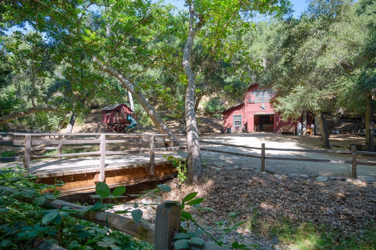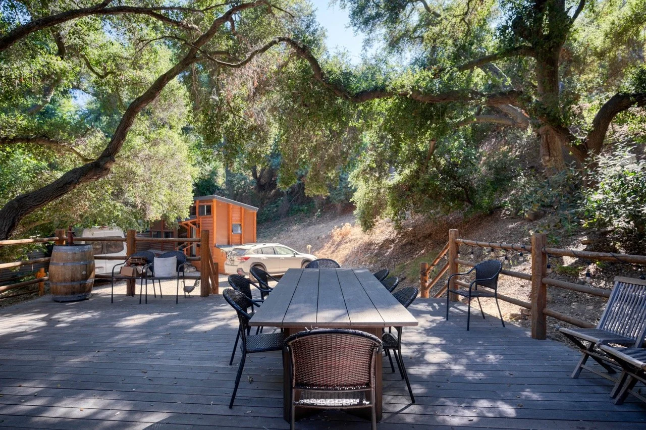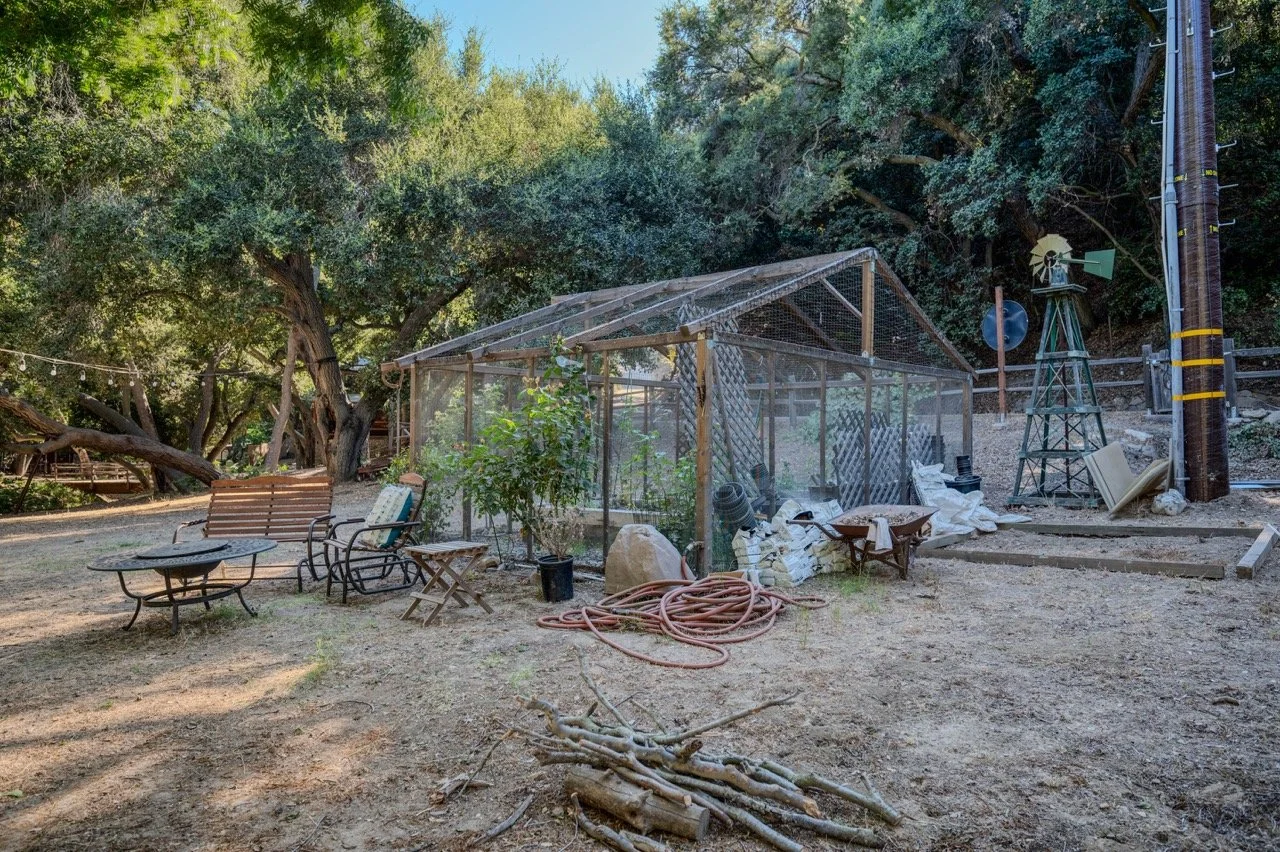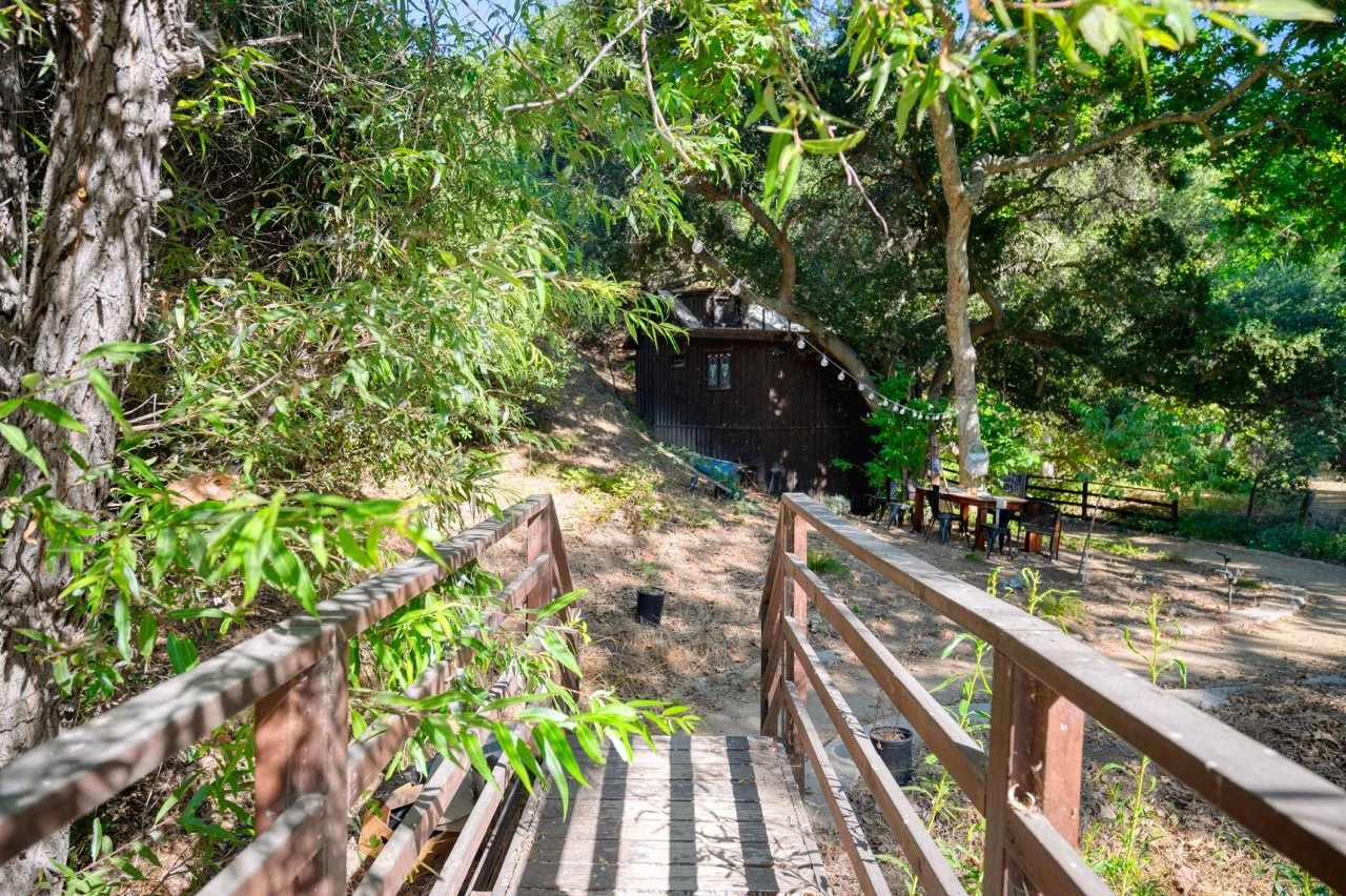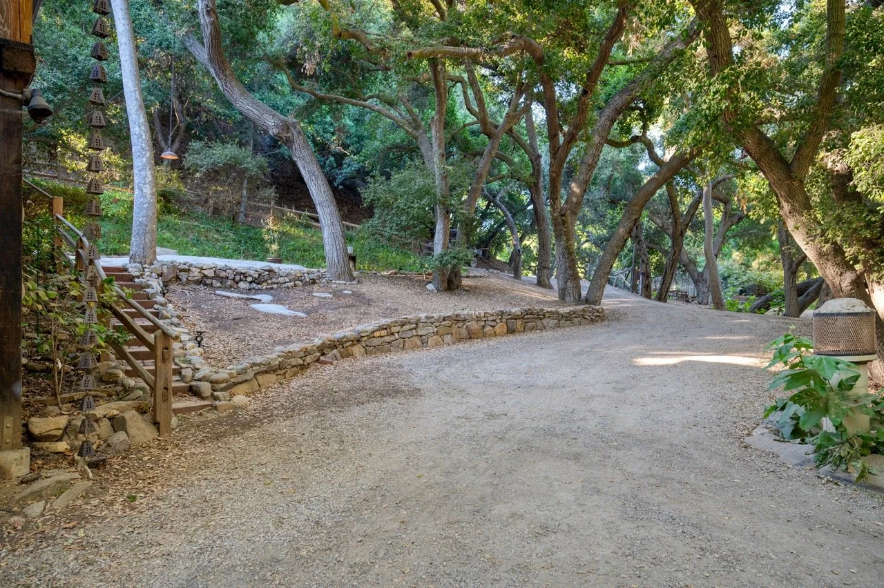 Craftsman Style log cabin nestled in three acres of private woodland just 30 minutes from Los Angeles, this stunning cabin offers productions an exceptional blend of rustic charm and modern sophistication. Featured in acclaimed shows including "This Is Us" and "Parks and Recreation," this versatile location delivers the perfect backdrop for everything from intimate character moments to expansive outdoor scenes. The cabin's modern rustic aesthetic is defined by dramatic wraparound windows that flood the space with natural light while offering seamless indoor-outdoor flow. With soaring ceilings, exposed beams features a river rock fireplace as the focal point. In the center of the cabin is a historic kitchen with vintage details and original cabinetry. Cozy seating nooks are scattered throughout filled with plants and texture. Plenty of natural light shines inside the home at different parts of the day and the house is illuminated with a warm golden glow. Outside you have the option of shooting in full sun or beneath the tree canopies with speckled or direct sunlight.