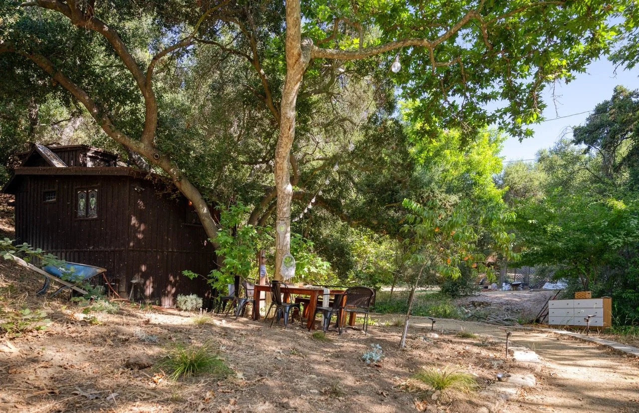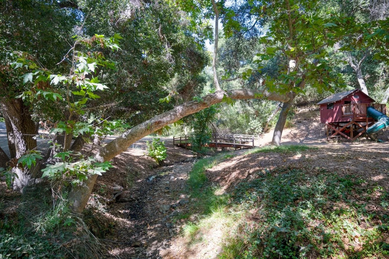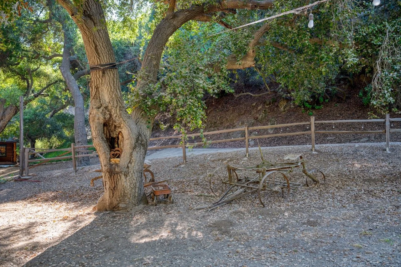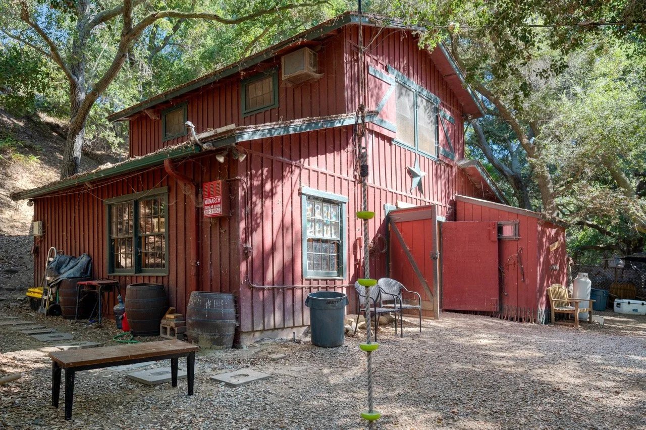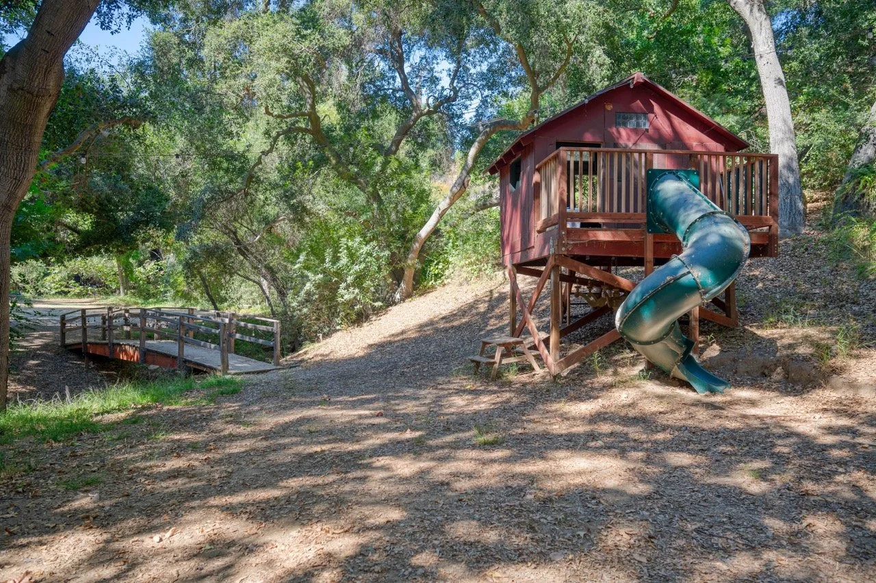 Craftsman Style log cabin nestled in three acres of private woodland just 30 minutes from Los Angeles, this stunning cabin offers productions an exceptional blend of rustic charm and modern sophistication. Featured in acclaimed shows including "This Is Us" and "Parks and Recreation," this versatile location delivers the perfect backdrop for everything from intimate character moments to expansive outdoor scenes. The cabin's modern rustic aesthetic is defined by dramatic wraparound windows that flood the space with natural light while offering seamless indoor-outdoor flow. With soaring ceilings, exposed beams features a river rock fireplace as the focal point. In the center of the cabin is a historic kitchen with vintage details and original cabinetry. Cozy seating nooks are scattered throughout filled with plants and texture. Plenty of natural light shines inside the home at different parts of the day and the house is illuminated with a warm golden glow. Outside you have the option of shooting in full sun or beneath the tree canopies with speckled or direct sunlight.