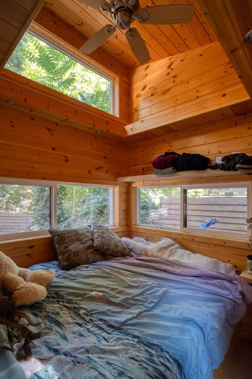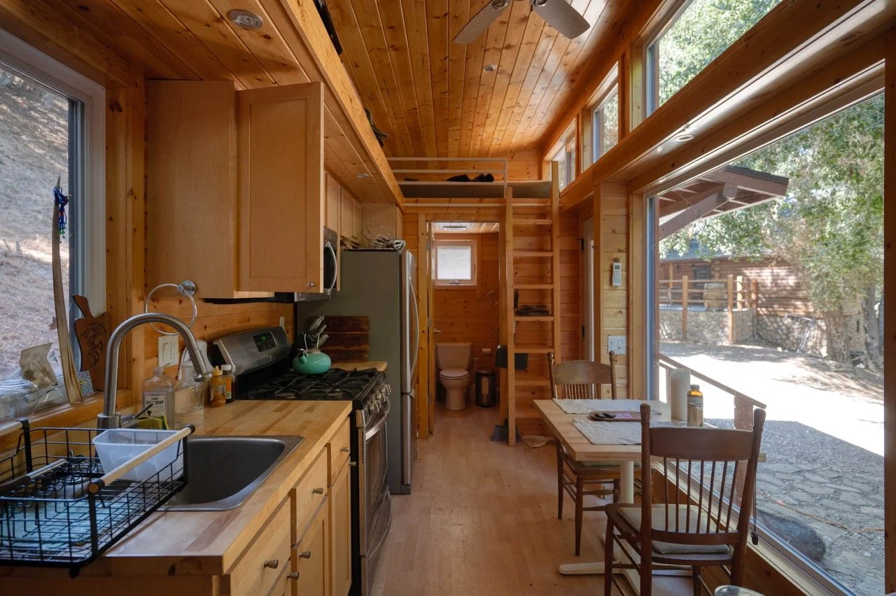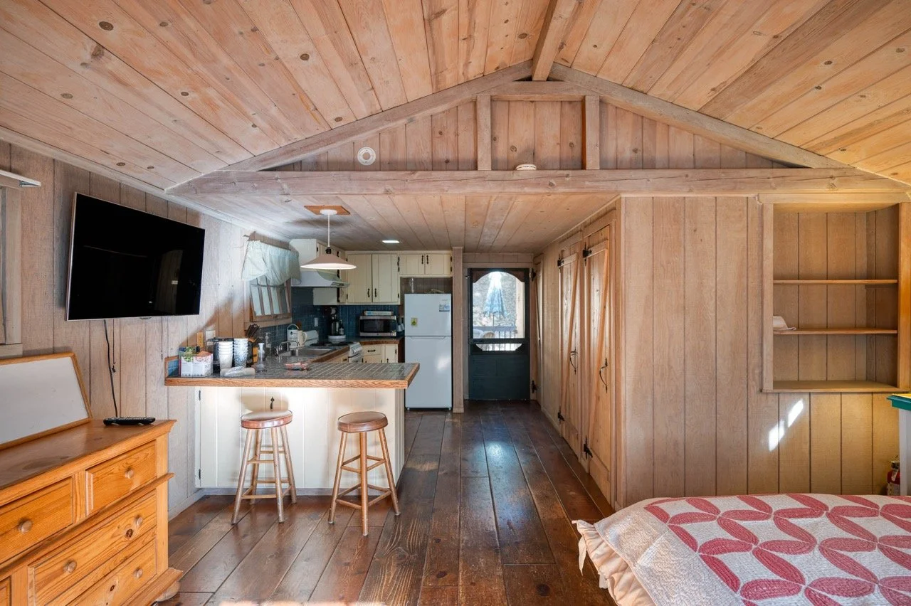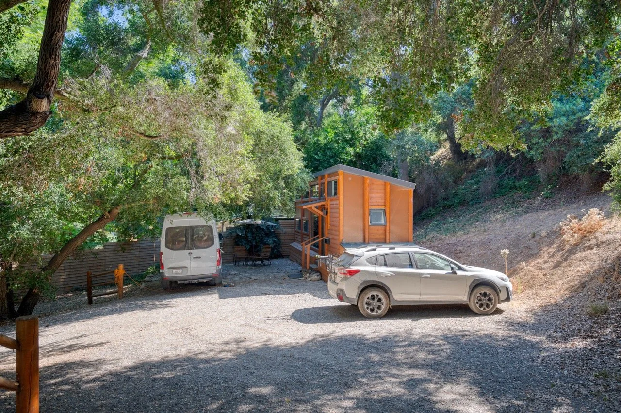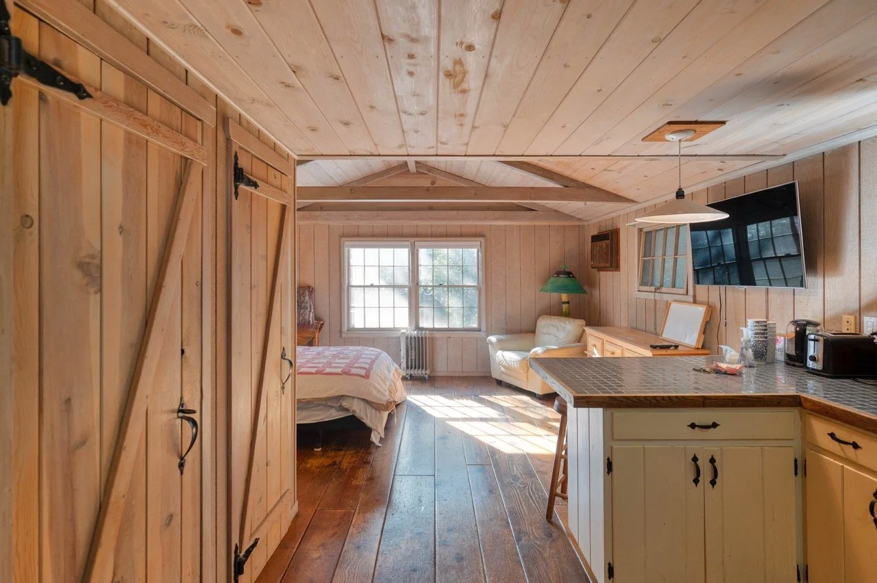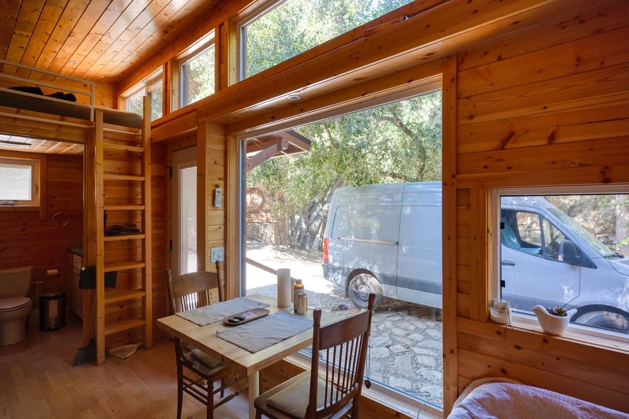 Craftsman Style log cabin nestled in three acres of private woodland just 30 minutes from Los Angeles, this stunning cabin offers productions an exceptional blend of rustic charm and modern sophistication. Featured in acclaimed shows including "This Is Us" and "Parks and Recreation," this versatile location delivers the perfect backdrop for everything from intimate character moments to expansive outdoor scenes. The cabin's modern rustic aesthetic is defined by dramatic wraparound windows that flood the space with natural light while offering seamless indoor-outdoor flow. With soaring ceilings, exposed beams features a river rock fireplace as the focal point. In the center of the cabin is a historic kitchen with vintage details and original cabinetry. Cozy seating nooks are scattered throughout filled with plants and texture. Plenty of natural light shines inside the home at different parts of the day and the house is illuminated with a warm golden glow. Outside you have the option of shooting in full sun or beneath the tree canopies with speckled or direct sunlight.