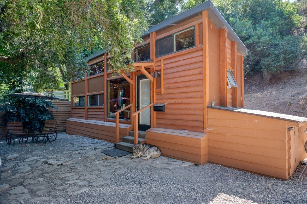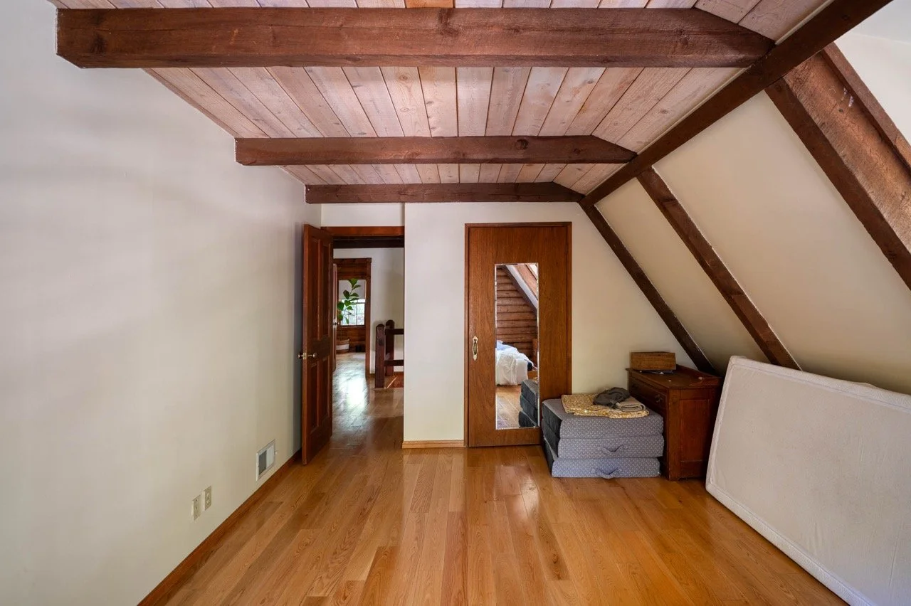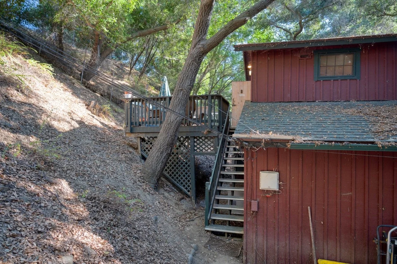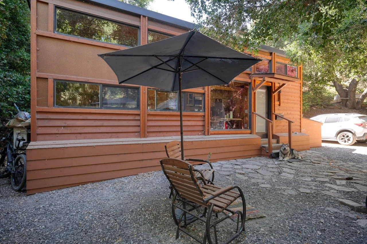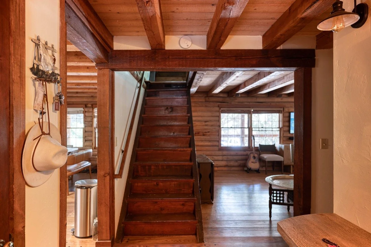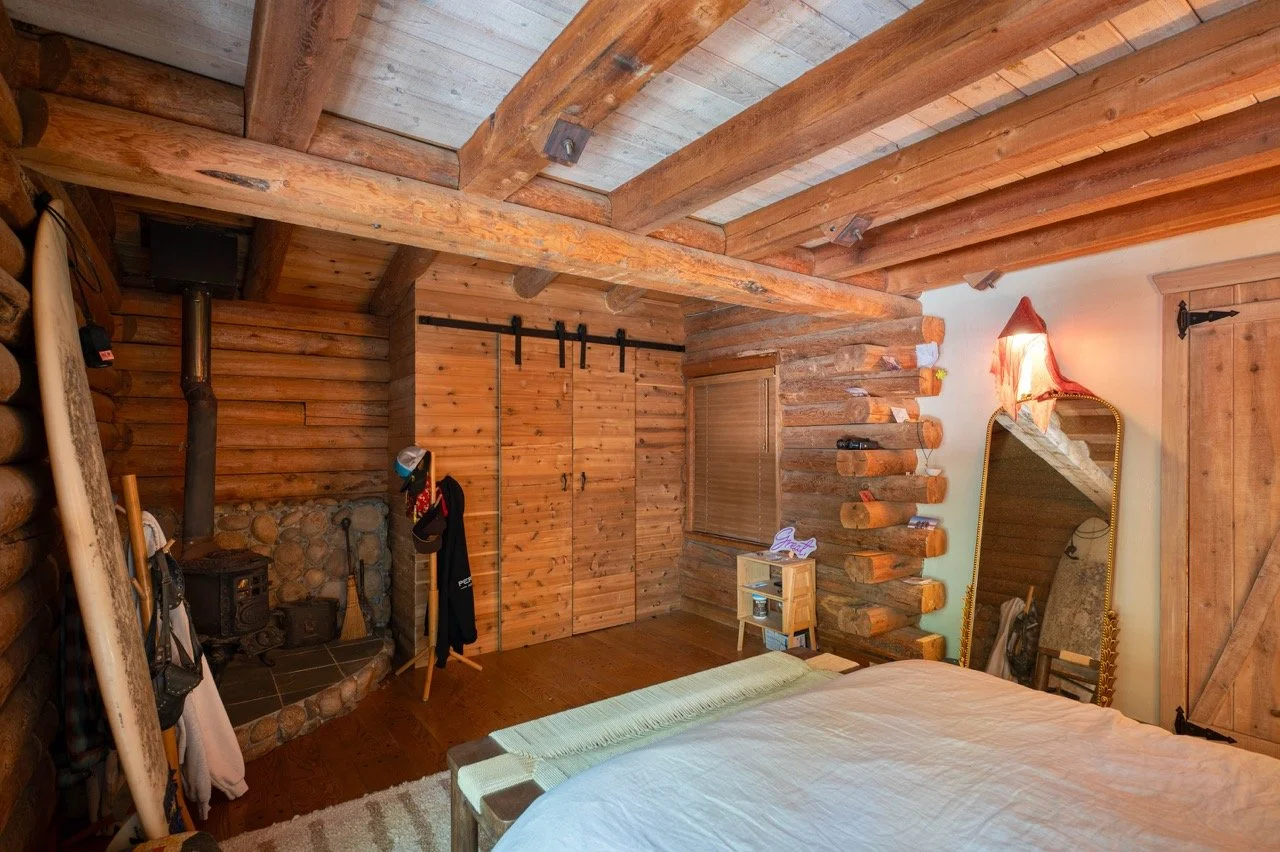 Built in 1977, this genuine log cabin on a 3 acre lot in Topanga features a huge windows, exposed wood beams, original log walls, and cozy, classic furnishings and decor.